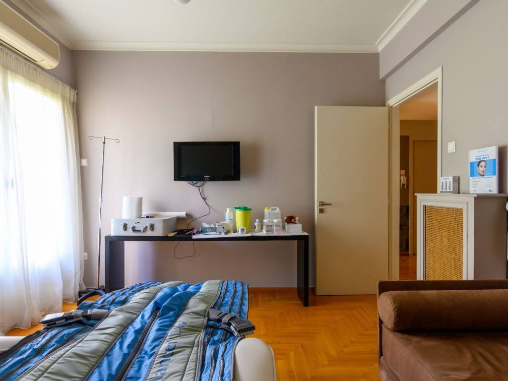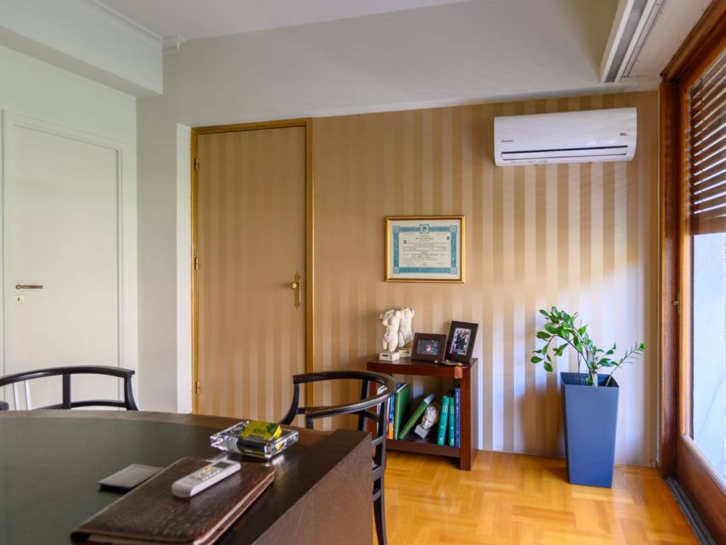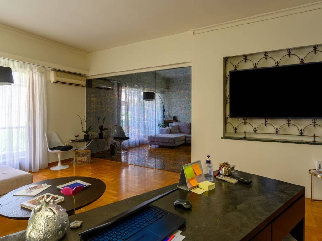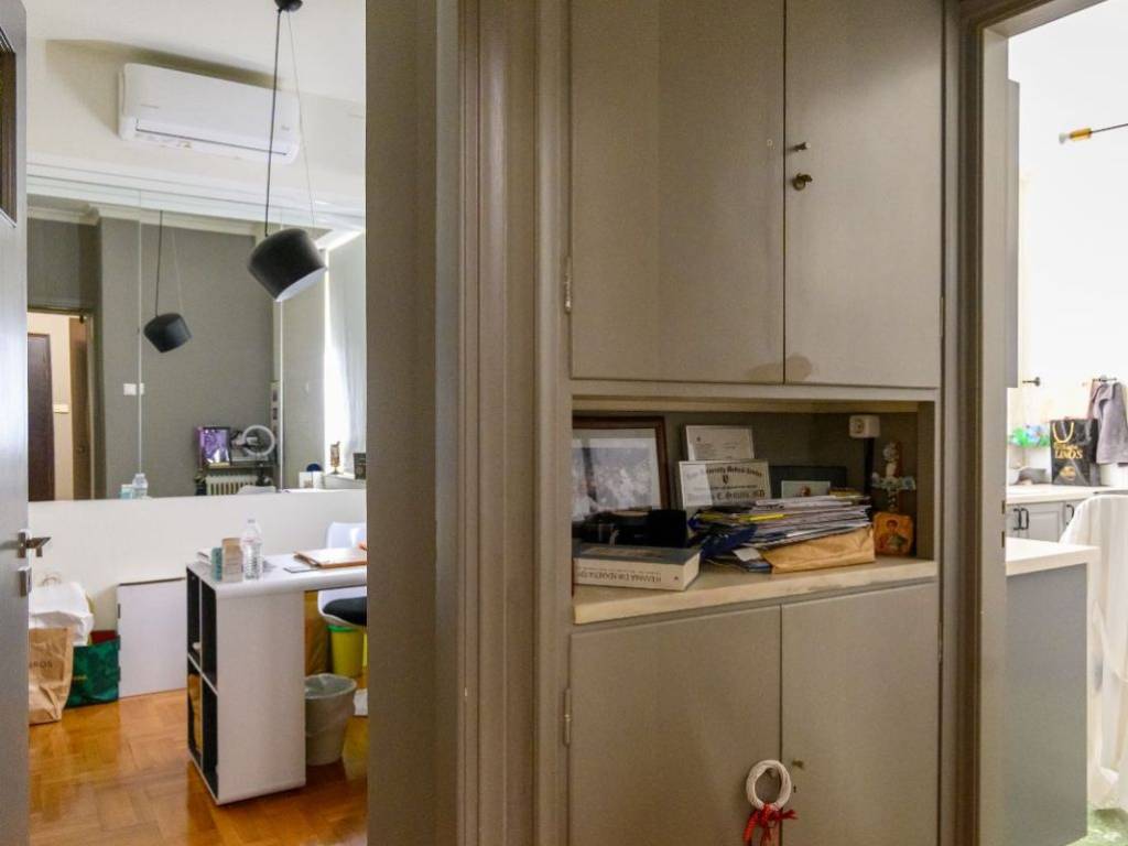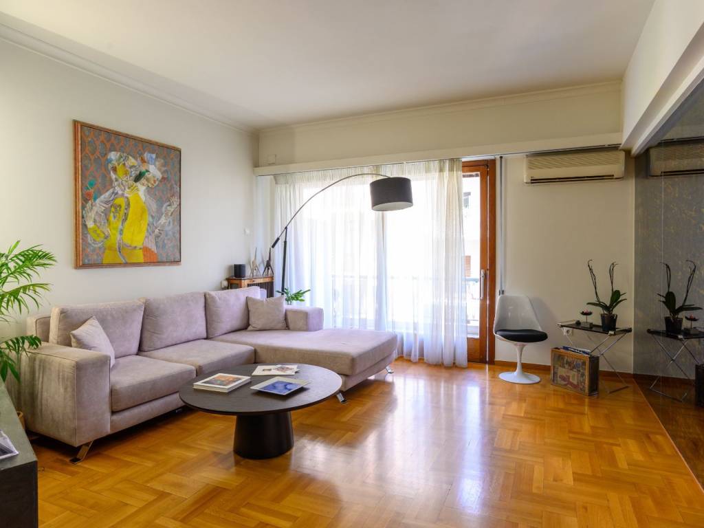 Φωτεινό και διαμπερές διαμέρισμα στην οδό Πατριάρχου Ιωακείμ, στον 3ο όροφο καλοδιατηρημένης πολυκατοικίας του 1962. Η αρχική του διαρρύθμιση περιλαμβάνει άνετο ενιαίο χώρο σαλοτραπεζαρίας, ευρύχωρη κουζίνα, δύο υπνοδωμάτια, ένα λουτρό και ένα WC επισκεπτών, δωμάτιο υπηρεσίας, αποθήκη/laundry room και δύο εξώστες. Σήμερα οι κύριοι χώροι έχουν χωριστεί με γυψοσανίδες σε μικρότερα δωμάτια για να εξηπηρετήσουν ανάγκες γραφείου και επιπλέον δωματίων, οι οποίες μπορούν εύκολα να αφαιρεθούν ώστε να αποκατασταθεί η αρχική διαρρύθμιση. Η τοποθεσία είναι προνομιακή, μόλις 5 λεπτά από την Πλατεία Κολωνακίου και τον σταθμό μετρό Ευαγγελισμός, με άμεση πρόσβαση σε αγορές, καφέ και εστιατόρια της περιοχής. Τηλέφωνα επικοινωνίας: Κουμουνδούρου 6944762270 6937456245