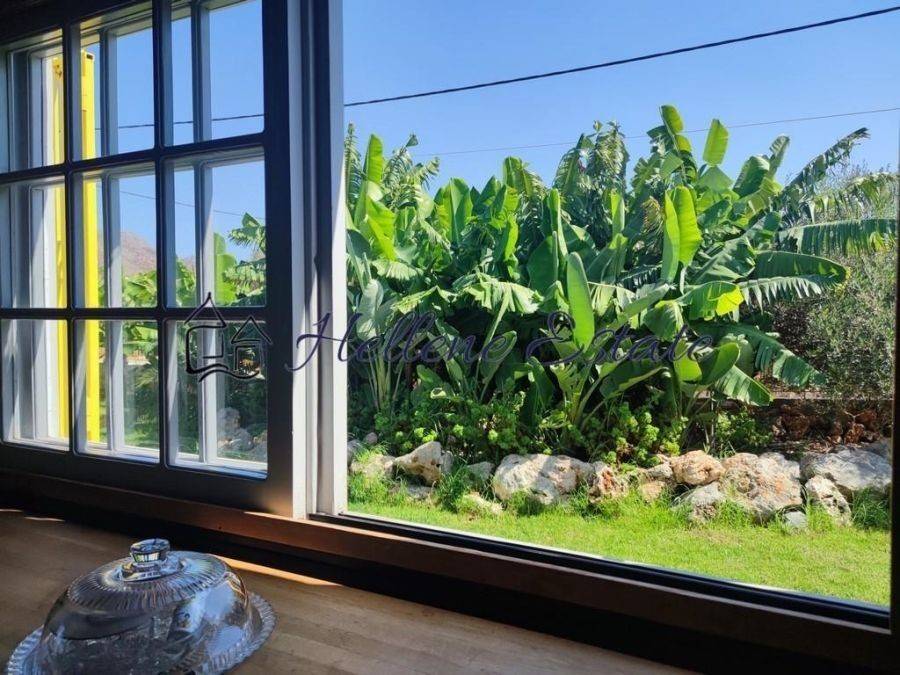 Μονοκατοικία προς πώληση στον Σταυρό Χανίων πρός πώληση. Τιμή πώλησης 430.000,00 € Η μονοκατοικία 110 τ.μ. ανακαινίστηκε πλήρως το 2025 προσφέροντας πλέον σύγχρονες ανέσεις κα περιβάλλοντα χώρο καταπράσινο με πολλές γωνιές χαλάρωσης και ηρεμίας . Το σπίτι βρίσκεται σε ένα γενναιόδωρο γωνιακό οικόπεδο 2,5 στρεμμάτων με πρόσοψη συνολικού μήκους 150 μέτρων !Εισερχόμενοι στο σπίτι βρισκόμαστε σε έναν φωτεινό ενιαίο χώροκαθιστικού και τραπεζαρίας με πλήρως εξοπλισμένη κουζίνα ,με ψηλά ταβάνια με ξύλιναφινιρίσματα και μονάδα κλιματισμού τελευταίας τεχνολογίας . Υπάρχουν όλες οι ηλεκτρικές συσκευές της κουζίνας από κατασκευαστή επώνυμο και σε πολύ καλή ποιότητα . Τα έπιπλα και τα υφάσματα είναι επιλεγμένα με κριτήριο την καλαισθησία , την ανθεκτικότητα και την άριστη ποιότητα πρώτων υλών.Οι χώροι ύπνου περιλαμβάνουν ένα ευρύχωρο υπνοδωμάτιο με διπλό κρεβάτικαι A/C, και ένα δεύτερο υπνοδωμάτιο επίσης με διπλό κρεβάτι και A/C,ενώ ένα μεγάλο μπάνιο με ντους ανάμεσα στους δύο χώρους ύπνου εξυπηρετεί την κυρίως κατοικία . Επιπλέον, ένα ξεχωριστό στούντιο 20 τ.μ. παρέχει επιπλέον χώρο , πουαποτελείται από ένα " κουζινάκι " , ένα υπνοδωμάτιο και ένα μπάνιο,ιδανικό για χρήση ξενώνα ή άλλη ιδιωτική χρήση.Την μοναδικότητα του ακινήτου όμως συνιστά ο υπέροχος κήπος που περιβάλλεται 400 δένδρα μπανάνας !!!! και πολλά άλλα δένδρα -30 ώριμες ελιέςπου παράγουν περίπου 200 κιλά ελαιόλαδο ετησίως, 150φοίνικες κ.α. - καλλωπιστικά φυτά , ένα μεγάλο μποστάνι για φρέσκα λαχανικά , μισό στρέμμα καλλιέργεια φρέσκιας ρίγανης , μεγάλες συστάδες κάκτων , παρτέρια με βότανα και πολλά ακόμα . Μια εκπληκτική πισίνα περίπου 25 μέτρων γίνεται το κεντρικό στοιχείο τηςυπαίθριας διαβίωσης, με εκπληκτική θέα στα Λευκά Όρη που ολοκληρώνει το παραδεισένιο σκηνικό αυτής της γοητευτικής κατοικίας .Υπάρχει χώρος στάθμευσης για τρία μεσαίου μεγέθους αυτοκίνητα. Ο Σταυρός Ακρωτηρίου , διάσημος για τη χρυσήπαραλία και τα γαλαζοπράσινα νερά του, είναι επίσης πλούσιοςσε ιστορία και κινηματογραφική φήμη, καθώς αποτέλεσε το σκηνικό για τις χαρακτηριστικότερες σκηνές της ταινίας ορόσημο "Ζορμπάς ο Έλληνας " Η περιοχή κάτω από το επιβλητικό ύψωμα του Σταυρού συνδυάζει την γαλήνη της Φύσης με την εγγύτητα σε τοπικές ταβέρνες και καταστήματα αλλά και στο γραφικό χωριό Χωραφάκια και βεβαίως στην πόλη των Χανίων . ΔΑΠΑΝΕΣ ΜΕΤΑΒΙΒΑΣΗΣ : Ηπρομήθεια του γραφείου από τον αγοραστή είναι 2,5% + ΦΠΑ επί της τελικήςτιμής αγοράς. Εκδότης του τιμολογίου είναι ο Γ.- Αλέξανδρος Παπαδάκης ,αδειούχος κτηματομεσίτης με Αριθμό ΓΕΜΗ 163982258000. Το μεσιτικό γραφείο Hellene Estate δεν φέρει ευθύνη γιατις πληροφορίες που παρέχονται σε αυτή την παρουσίαση καθώς είναι μόνογια ενημέρωση και υπόκεινται σε παραλείψεις, αλλαγή τιμής ή απόσυρσηχωρίς προηγούμενη ειδοποίηση. Ο φόρος μεταβίβασης, τα έξοδαΣυμβολαιογράφου και Υποθηκοφυλακείου και πιθανά δικηγορικά έξοδακαταβάλλονται από τον αγοραστή.