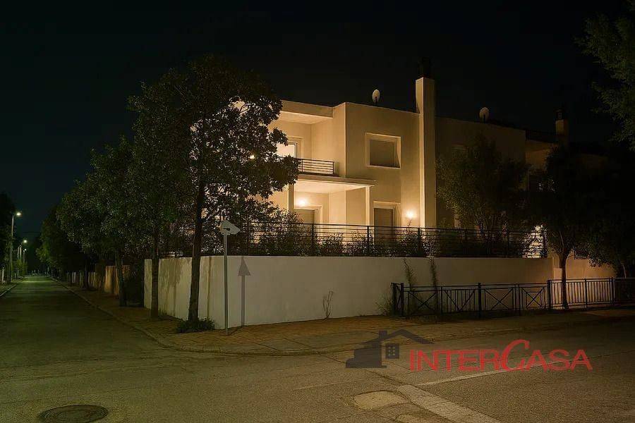 ΝΕΑ ΕΡΥΘΡΑΙΑ (Μορτερό) 307 τμ γωνιακή μεσημβρινού προσανατολισμού μεζονέτα σε 500τμ οικόπεδο, σε άριστο σημείο, κατασκευής 2000, ανακαινισθείσα το 2023, διαθέτει μεγάλη υποδοχή , κουζίνα με καθημερινό καθιστικό, wc ξένων στο ισόγειο, 2 υπνοδωμάτια με τα μπάνια τους στο 1ο όροφο, σοφίτα με κτιστά κρεβάτια , μπάνιο και μπαλκόνι στο δώμα, playroom με 2ο τζάκι, 2η κουζίνα, δωμάτιο προσωπικού με μπάνιο, αποθήκη, λεβητοστάσιο, αποθήκες στο ημιυπόγειο. Επίσης υπάρχει περιμετρικά κήπος, στεγασμένη βεράντα με αλουμινένιες πέργκολες, κτιστό BBQ στον εξωτερικό χώρο της κατοικίας, τέλος είναι εξοπλισμένο με θερμοπροσόψεις, πόρτες ασφαλείας, συναγερμό, κάγκελα ασφαλείας, θυροτηλεόραση & τηλεφωνικό κέντρο, αυτόνομη θέρμανση πετρελαίου ανά ζώνη, ηλιακό θερμοσίφωνα, A/C με split units, δρύινα πατώματα, εντυπωσιακή εσωτερική σκάλα, λουτρά με πάγκους Corian και διπλούς νιπτήρες, κουζίνες με πάγκους Corian και πορτάκια λουστραρισμένου ξύλου.