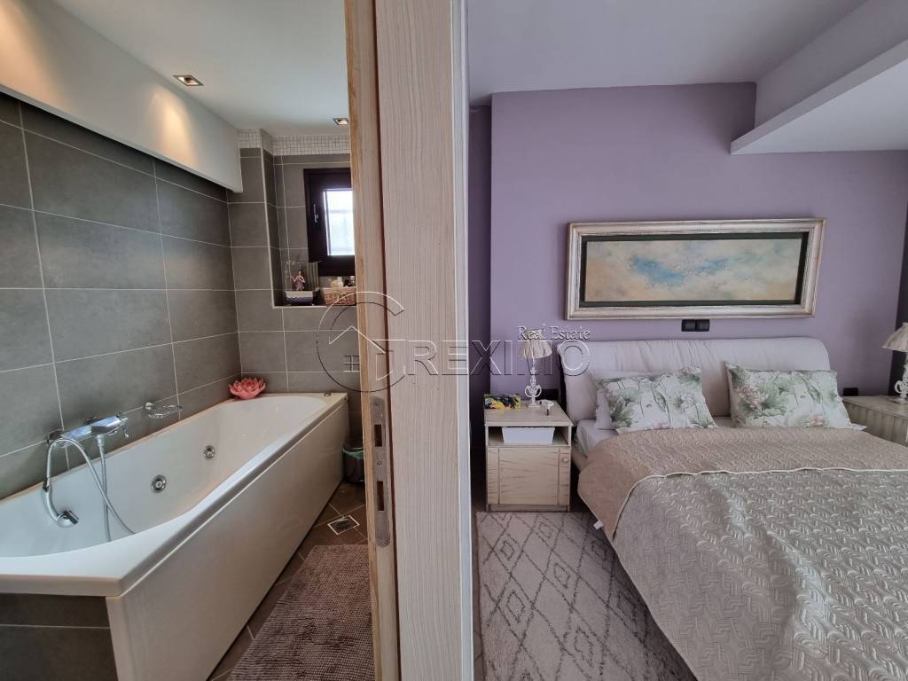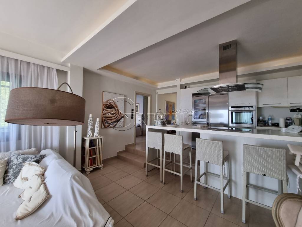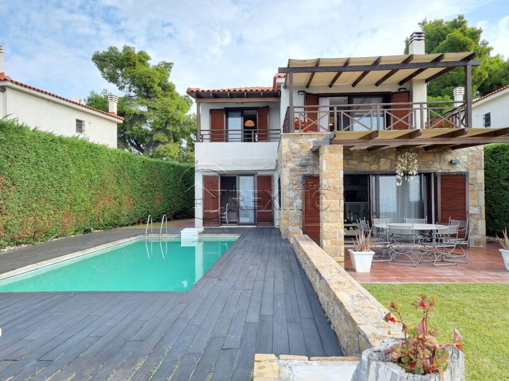 Πολυτελής βίλα 170 τ.μ., χτισμένη σε οικόπεδο 500 τ.μ. Το ακίνητο βρίσκεται σε μία από τις πιο γραφικές τοποθεσίες της χερσονήσου – το οικολογικά καθαρό παραθαλάσσιο θέρετρο της Ελάνης. Η αμμώδης παραλία της Ελάνης απέχει μόλις 800 μ. Η περιοχή φημίζεται για τη φυσική της ομορφιά, τα μεγαλοπρεπή πευκοδάση, την πλούσια βλάστηση και τις πανοραμικές θέες. Διαρρύθμιση και παροχές: Στο πρώτο επίπεδο υπάρχει ευρύχωρο καθιστικό με τζάκι, τραπεζαρία, σύγχρονη πλήρως εξοπλισμένη κουζίνα, αποθήκη, ένα υπνοδωμάτιο με γκαρνταρόμπα και δύο μπάνια. Στο δεύτερο επίπεδο βρίσκονται δύο ευρύχωρα υπνοδωμάτια με μεγάλα πανοραμικά παράθυρα που εξασφαλίζουν φυσικό φως, το καθένα με το δικό του μπάνιο, καθώς και δύο βεράντες με εντυπωσιακή θέα στη θάλασσα. Το ακίνητο πωλείται πλήρως επιπλωμένο, κατασκευασμένο με ποιοτικά υλικά, σχεδιασμένα έπιπλα, αρμονικά συνδυασμένα ανοιχτά χρώματα, δάπεδα από μάρμαρο και επενδύσεις από φυσικά υλικά. Η βίλα διαθέτει ιδιωτική πισίνα και κήπο 500 τ.μ., πλούσια διαμορφωμένο με γοητευτική βεράντα που προσφέρει ιδιωτικότητα και χαλάρωση. Επιπλέον διαθέτει σύστημα παρακολούθησης, συναγερμό και χώρο στάθμευσης για δύο αυτοκίνητα. Αποτελεί μια εξαιρετική επενδυτική ευκαιρία με άριστη τοποθεσία – μοναδικό σημείο που περιβάλλεται από βουνά και πλούσια βλάστηση, προσφέροντας υπέροχη θέα στη θάλασσα.