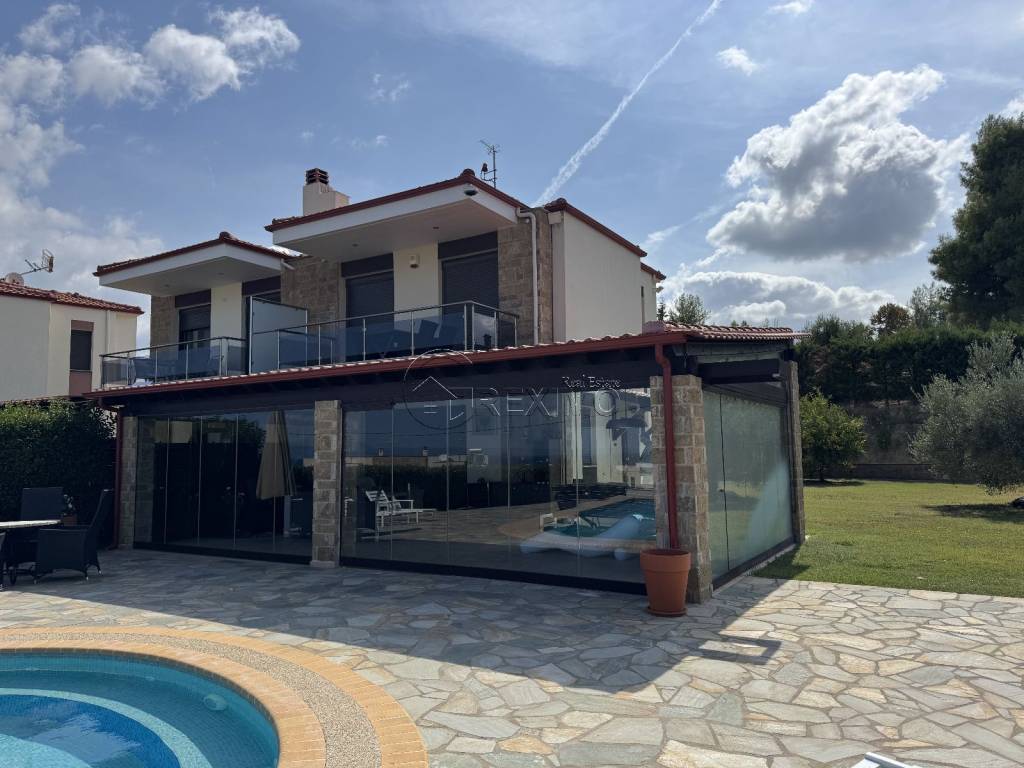 Βίλα με εκλεπτυσμένο αρχιτεκτονικό σχεδιασμό στη Χανιώτη, Χαλκιδική. Σας παρουσιάζουμε ένα πολυτελώς επιπλωμένο ακίνητο επιφάνειας 120 τ.μ., το οποίο βρίσκεται σε οικόπεδο 1.000 τ.μ. Η βίλα βρίσκεται σε μια από τις πιο περιζήτητες περιοχές της Χαλκιδικής – στη Χανιώτη. Το χωριό είναι γνωστό για τις παραλίες του με τα κρυστάλλινα, καθαρά νερά και το φυσικό τοπίο με την εντυπωσιακή του ομορφιά. Smart Home. Πωλείται πλήρως επιπλωμένη και εξοπλισμένη με σύγχρονες ηλεκτρικές συσκευές υψηλής τεχνολογίας. Συνδυάζει άνεση και κομψότητα – ένα ακίνητο που προσφέρει αίσθηση ιδιωτικότητας και απόλυτης ηρεμίας. Διάταξη και παροχές: Αναπτύσσεται σε δύο επίπεδα με λειτουργική κατανομή: Στο πρώτο επίπεδο – καθιστικό με πλήρως εξοπλισμένη κουζίνα με ηλεκτρικές συσκευές τελευταίας τεχνολογίας, WC και υπνοδωμάτιο με ιδιωτικό μπάνιο. Προσφέρει ιδανική σύνδεση μεταξύ εσωτερικών και εξωτερικών χώρων. Από το καθιστικό υπάρχει πρόσβαση σε εξωτερικό χώρο και βεράντα 70 τ.μ. Στο δεύτερο επίπεδο – δύο υπνοδωμάτια, μπάνιο και έξοδος σε βεράντα με όμορφη θέα προς την ακτή. Διαθέτει 2 γκαράζ με εγκατεστημένο σταθμό φόρτισης ηλεκτρικού αυτοκινήτου, ευρύχωρο κήπο, εξωτερική θερμαινόμενη πισίνα, εξωτερικό ντους, αποθήκη 10 τ.μ., αυτόματο αρδευτικό σύστημα και αυτόνομη θέρμανση — μερικά μόνο από τα πλεονεκτήματα αυτού του Smart σπιτιού. Μια εξαιρετική επενδυτική ευκαιρία, κατάλληλη τόσο για ιδιωτική χρήση όσο και για εκμετάλλευση μέσω ενοικίασης.