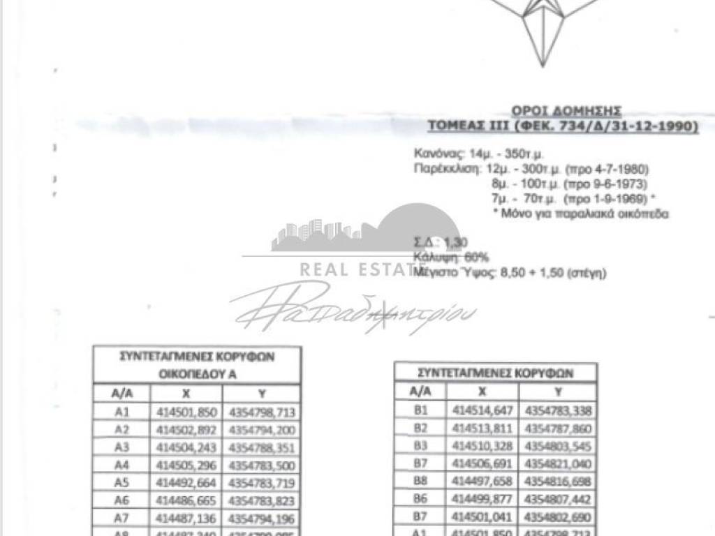 Κωδικός ακινήτου: 8168 - Αγριά Κέντρο ΠΩΛΕΙΤΑΙ οικοδομήσιμο επίπεδο οικόπεδο συνολικής επιφάνειας 590.00 τ.μ. με συντελεστή δόμησης: 1.30 και συντελεστή κάλυψης: 0.60 Διαθέτει κτίσμα, περίφραξη Τιμή: 220.000 € Πωλείται οικόπεδο 590 τ.μ. στην Αγριά του Βόλου. Είναι γωνιακό και διαμπερές στην οδο Τριανταφυλλου και 28ης Οκτωβρίου. Το ακίνητο είναι το ακριβότερο προϊόν της αγοράς, η αγορά ή η πώληση ενός ακινήτου είναι πολλές φορές αποτέλεσμα των προσπαθειών μιας ζωής! Σας καθοδηγούμε καθ όλη τη διαδικασία αγοράς ή μίσθωσης ακινήτου και σας βοηθάμε σε κάθε βήμα για την εύρεση της ιδανικής ιδιοκτησίας για εσάς. Το γραφείο μας συνεργάζεται στενά με διακεκριμένους μηχανικούς, αρχιτέκτονες δικηγόρους συμβολαιογράφους και οικονομικούς συμβούλους. Όλοι μαζί συγκροτούν μια ισχυρή ομάδα επαγγελματιών που εγγυάται τον επιτυχή χειρισμό όλων των εξειδικευμένων εκείνων ζητημάτων που υπάρχουν στα πλαίσια μιας κτηματομεσιτικής συναλλαγής. Οι πληροφορίες και τα χαρακτηριστικά των ακινήτων έχουν καταχωρηθεί βάσει των πληροφοριών και στοιχείων που προσκόμισε ο εντολέας. Το σημείο στο χάρτη δεν ανταποκρίνεται πάντα στην πραγματική διεύθυνση του ακινήτου. Όλα τα ακίνητα που προβάλλουμε μέσω internet είναι διαθέσιμα, καθώς γίνεται συνεχής ενημέρωση και αποσύρονται τα μη διαθέσιμα. Διεύθυνση μεσιτικού γραφείου Αναλήψεως 361 - Κανάρη Τηλέφωνο: 2421054087 Κιν. 6979609697 - 6977411883 Κωνσταντίνος Παπαδημητρίου