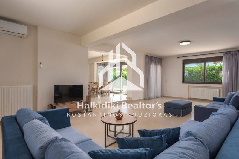 Πανέμορφη βίλα 276 τ.μ. με ιδιωτική πισίνα 50 τ.μ. και κήπο 2000 τ.μ αποκλειστικής χρήσης στη Σάνη Χαλκιδικής. Από την κεντρική είσοδο του σπιτιού μεταφερόμαστε στην όμορφη κουζίνα του που διαθέτει όλο τον απαραίτητο εξοπλισμό με πολλά ντουλάπια που θα καλύψουν κάθε σας ανάγκη, στην συνέχεια επισκεπτόμαστε το μεγάλο και φωτεινό σαλόνι με άμεση πρόσβαση στην πανέμορφη αυλή αλλά και την πισίνα. Από την εσωτερική σκάλα κατεβαίνουμε και συναντάμε δυο μεγάλα υπνοδωμάτια, ένα σαλόνι, ένα layndry room, μια αποθήκη και ένα μπάνιο. Στον πρώτο όροφο του σπιτιού υπάρχουν ακόμη τρία ευρύχωρα υπνοδωμάτια, ένα πολύ μεγάλο λουτρό και ένα w/c. Το ακίνητο πωλείται χωρίς την επίπλωση. Η Σάνη είναι η πιο δημοφιλής περιοχή της Χαλκιδικής, γνωστή για το πυκνό δάσος και τις πιο καθαρές αμμουδιές της. Η ζωντανή Sani Marina με την εκπληκτική ποικιλία από κομψές μπουτίκ, πολυτελή εστιατόρια και μοντέρνα νυχτερινή ζωή απέχει μόλις λίγα λεπτά. Οι βίλες έχουν δικό τους χώρο στάθμευσης και ιδιωτική πισίνα είναι χτισμένες μέσα στο δάσος και κοντά στην παραλία. Αναμφίβολα, η Σάνη είναι η ιδανική τοποθεσία για να χαλαρώσετε και να απολαύσετε τις οικογενειακές σας διακοπές.
