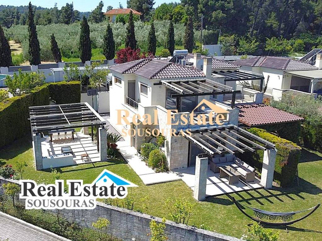 Εξαιρετική βίλα πολυτελούς κατασκευής με ατομικό κήπο και κοινόχρηστη πισίνα κολύμβησης Αναπτύσσετε σε δύο επίπεδα και αποτελείται από τρία υπνοδωμάτια δύο μπάνια, Ιταλική κουζίνα, τραπεζαρία και σαλόνι με μια μεγάλη βεράντα και στεγασμένο αίθριο στον κήπο. Διαθέτει πόρτες ασφαλείας, πλήρη επίπλωση, ηχομονωτικά παράθυρα, συναγερμό ασφαλείας, BBQ, κλιματισμό, αυτόνομο σύστημα θέρμανσης, εσωτερική και εξωτερική αποθήκη, εξωτερικό ντούζ, εξωτερικό WC. και έναν υπέροχο κήπο με αυτόματο σύστημα ποτίσματος και χώρο στάθμευσης δυο θέσεων Βρίσκετε 250 m από μια μοναδική παραλία με κρυστάλλινα νερά και ψιλή άμμο, 1,5 Km από την αγορά της τουριστικής πόλης της Κρυοπηγής με πολυτελή καταστήματα super markets café bar και εστιατόρια, 11km από Νοσοκομείο και 91km από το Αεροδρόμιο της Θεσσαλονίκης . Για περισσότερες πληροφορίες επικοινωνήστε με το γραφείο μας. Υπεύθυνος πωλήσεων Sousouras Vasilis.
