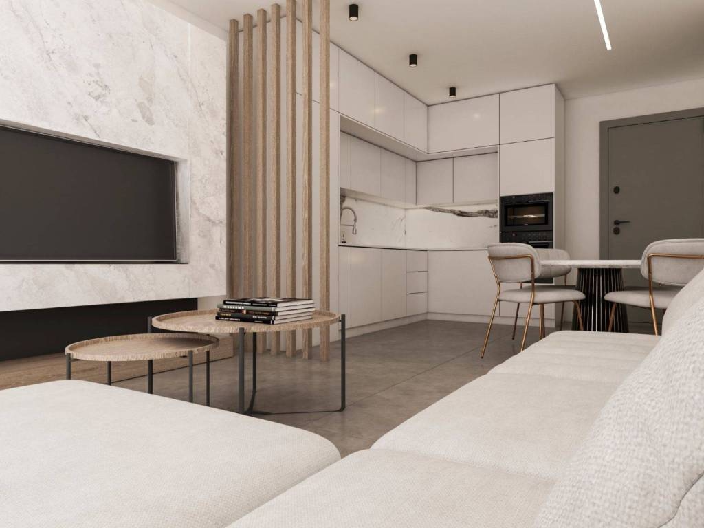 Πωλείται πολυτελές διαμέρισμα 45 τ.μ. στον 2ο όροφο σε υπό ανέγερση 3 όροφη οικοδομή επί πυλωτής, στην γωνία των οδών Ηρακλέους & Κόρακα, απέναντι από το 4ο Νηπιαγωγείο Τρικάλων, περιοχή Τρικκαίογλου, στα Τρίκαλα. Το διαμέρισμα ανήκει στην ενεργειακή κλάση Α+ και αποτελείται από ενιαίο χώρο σαλονιού-κουζίνας, υπνοδωμάτιο, μπάνιο, ξεχωριστή ντουλάπα για πλυντήριο - στεγνωτήριο και μεγάλες βεράντες. Διαθέτει ενδοδαπέδια θέρμανση με αντλία θερμότητας, θωρακισμένη πόρτα, μεγάλα ενεργειακά κουφώματα, θυροτηλεόραση, σύστημα φόρτισης ηλεκτρικού αυτοκινήτου και προεγκαταστάσεις για smart home, συναγερμό, ηλιακό και κλιματισμό. Συνοδεύεται από μεγάλη αποθήκη 10,50 τ.μ. στο υπόγειο και θέση στάθμευσης στον ακάλυπτο χώρο της οικοδομής. Όλα τα υλικά είναι υψηλής ποιότητας και αισθητικής