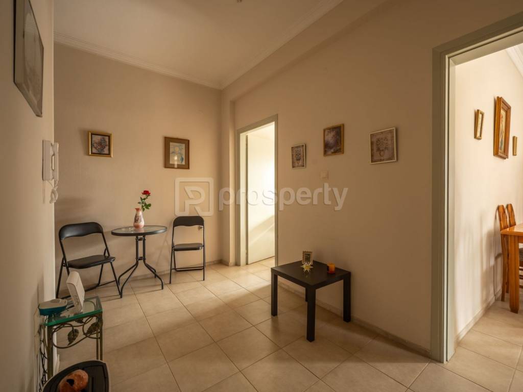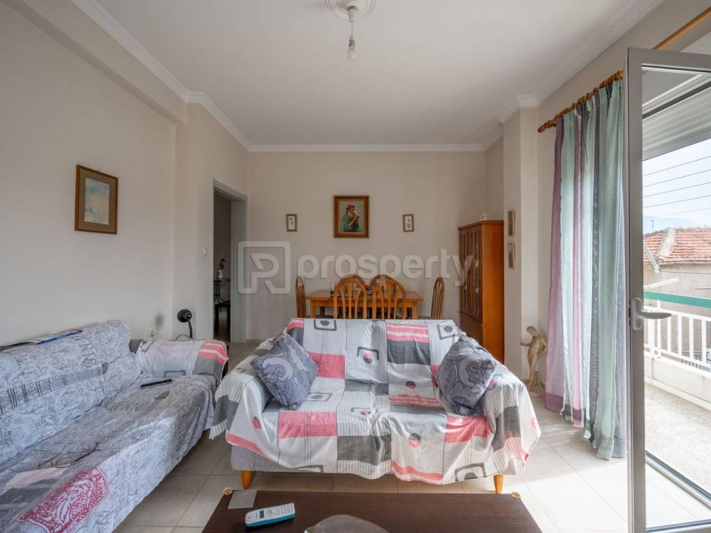 Πωλείται γωνιακό διαμέρισμα 1ου ορόφου, μεσημβρινό, πολύ φωτεινό και με θέα, πολύ καλής διαρρύθμισης. Διαθέτει χωλ, μεγάλη κουζίνα, σαλοτραπεζαρία, δυο υπνοδωμάτια, αποθήκη, μπάνιο και μεγάλα γωνιακά μπαλκόνια. Είναι ανακαινισμένο, διαθέτει αλουμίνια καλής κατασκευής με διπλά τζάμια, κεντρική θέρμανση (λειτουργία μετά από συνεννόηση των ενοίκων) και AC. Βρίσκεται κοντά σε πλατεία, σούπερ μάρκετ και άλλα καταστήματα, κοντά σε εκκλησία και στάση αστικής συγκοινωνίας, ενώ σε μικρή απόσταση υπάρχουν σχολεία Αβάθμιας και Ββάθμιας εκπαίδευσης. Το κέντρο της πόλης βρίσκεται σε απόσταση 10-15 λεπτών με τα πόδια. https://marketplace.theprosperty.com/listings/14777 ☎️ 210 6812500