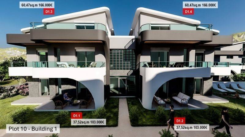 • 12 Διαμερίσματα ισογείου από 36,95τ.μ. έως 37,52τ.μ, που αποτελούνται από σαλοκουζίνα, 1 υπνοδωμάτιο, 1 μπάνιο.