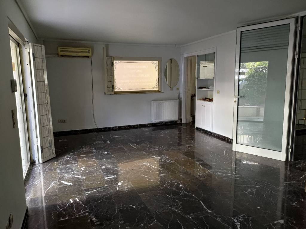 Νέο Ψυχικό. Ισόγειο διαμέρισμα 87τμ κατάλληλο για κατοικία ή για επαγγελματική στέγη. Βρίσκεται σε κεντρικό σημείο μεταξύ των οδών Αγίας Σοφίας και Αγγ. Σικελιανού, επί της πλατείας Αγ. Σοφίας στο Ν. Ψυχικό και σε απόσταση 1 λεπτού από το τέρμα της γραμμής 3 των τρόλεϊ και 4 λεπτών από την Λεωφ. Κηφισίας. Είναι διαμέρισμα προσόψεως, γωνιακό, επί της πλατείας. Έχει μεγάλο χολ, μεγάλο χώρο για καθιστικό-τραπεζαρία, υπνοδωμάτιο, κουζίνα και λουτρό. Έχει ατομική θέρμανση με φυσικό αέριο, κλιματιστικά, ανακαινισμένο μαρμάρινο δάπεδο σε όλους τους χώρους, κουφώματα αλουμινίου, πόρτα ασφαλείας και μεταλλικά πτυσσόμενα κάγκελα σε μπαλκονόπορτες και παράθυρα για περισσότερη ασφάλεια. Τηλ. επικοινωνίας: 6940806040.
