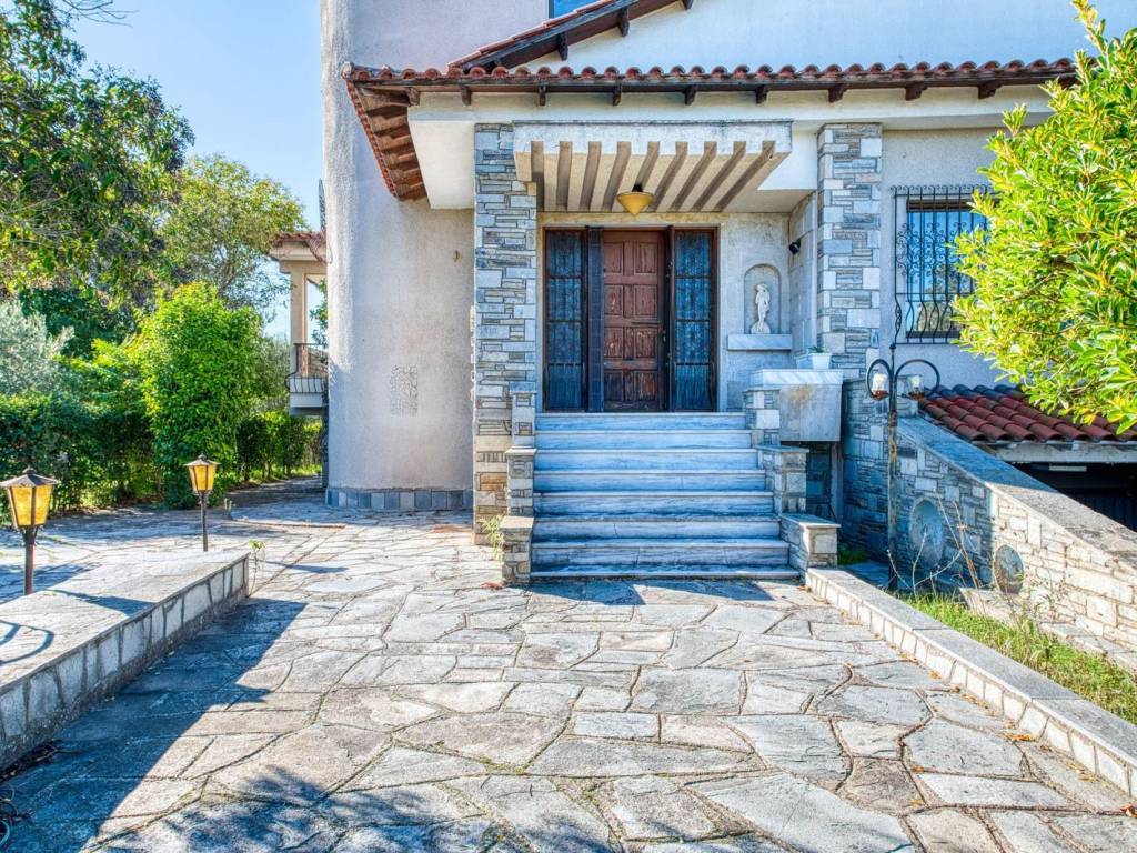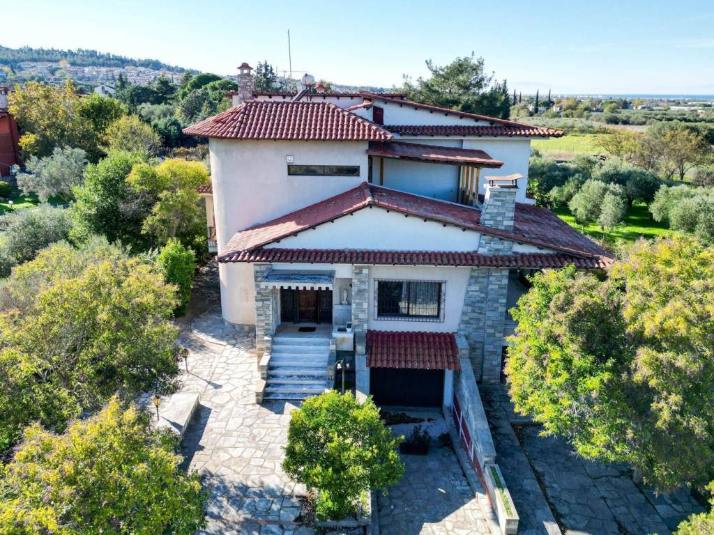 Πωλείται αρχοντική μονοκατοικία τριών επιπέδων, συνολικής επιφάνειας 450 m², σε μεγάλο οικόπεδο 4.250 m², κατασκευής του 1982. Το ακίνητο είναι φωτεινό, διαμπερές, με μεγάλες βεράντες και όμορφη θέα και χρήζει μερικής ανακαίνισης. Αποτελείται από υπόγειο, ανώγειο και πρώτο όροφο, με λειτουργική διαρρύθμιση που περιλαμβάνει τρέσσερα υπνοδωμάτια, δύο μπάνια, τρία WC, δύο σαλόνια, τραπεζαρία, δύο κουζίνες και χώρο πλυντηρίου (στο ισόγειο). Διαθέτει ξύλινα κουφώματα, δάπεδα από μάρμαρο και ξύλο, τζάκι και ατομική θέρμανση πετρελαίου. Υπάρχει επίσης ξεχωριστός χώρος για οικιακό βοηθό και μεγάλες αποθηκευτικές επιφάνειες. Στους εξωτερικούς χώρους συναντά κανείς κλειστό γκαράζ δύο θέσεων, εξωτερικές στεγασμένες θέσεις στάθμευσης, μπάρμπεκιου και μεγάλες περιμετρικές βεράντες. Η κατοικία διαθέτει συναγερμό και προσφέρει ιδιωτικότητα, άνεση και σημαντικές δυνατότητες αναβάθμισης σε ένα ομορφο μεγάλο κήπο με ελαιόδενδρα (περίπου 80) και οπωροφόρα δέντρα (τα ελαιόδενδρα είναι γεμάτα ελιές). Το Νέο Ρύσιο Θεσσαλονίκης αποτελεί μια από τις πιο ανερχόμενες επιλογές για αγορά κατοικίας, συνδυάζοντας προαστιακή ηρεμία με εξαιρετική συνδεσιμότητα. Σε λίγα μόλις λεπτά βρίσκεστε στο Αεροδρόμιο “Μακεδονία”, στα μεγάλα εμπορικά κέντρα Mediterranean Cosmos και IKEA, αλλά και στους βασικούς οδικούς άξονες προς Θεσσαλονίκη και Χαλκιδική, κάνοντας την καθημερινή μετακίνηση απλή υπόθεση. Η περιοχή ξεχωρίζει για το πράσινο, την ποιότητα ζωής και το αίσθημα γειτονιάς, ιδανική για οικογένειες και όσους αναζητούν περισσότερο χώρο και ησυχία χωρίς να απομακρύνονται από το κέντρο της πόλης. Διαθέτει πλήρη τοπική αγορά και υπηρεσίες, σχολεία, καταστήματα και καφέ, ενώ σε πολύ κοντινή απόσταση βρίσκονται χώροι αναψυχής, πάρκα, γήπεδα και πεζοπορικές διαδρομές για δραστήριες καθημερινές. Με σύγχρονες κατοικίες, καλές υποδομές και στρατηγική τοποθεσία, το Νέο Ρύσιο αποτελεί μια ιδιαίτερα ελκυστική ευκαιρία για όσους επενδύουν σήμερα στην αγορά ακινήτων της Θεσσαλονίκης, με προοπτική για σταθερή ζήτηση και μελλοντική υπεραξία.