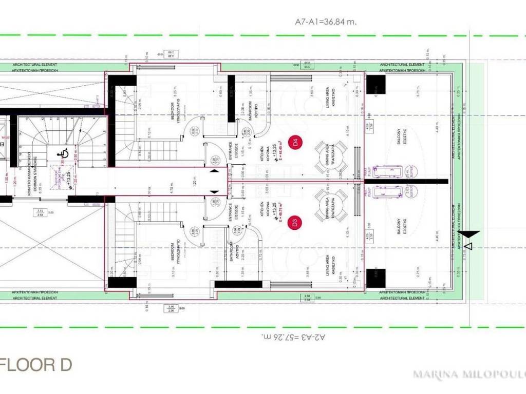 ΓΛΥΦΑΔΑ, Άνω, σε κομβικό σημείο, σε κτίριο υπό κατασκευή, μεζονέτα προσόψεως 4ου-5ου (τελευταίου) ορόφου, συνολικής επιφάνειας 79,3 τμ με θέα προς τον Υμηττό και κοινόχρηστη πισίνα (D4 διαμέρισμα). - 4ος όροφος, 48,5 τμ, ο χώρος υποδοχής, τραπεζαρίας, ενιαία κουζίνα, 1 υ/δ, 1 μπάνιο, βεράντα προσόψεως 12 τμ - 5ος όροφος, 31 τμ, 1 master υ/δ με walk-in closet και εξώστης/roof garden 21,5 τμ με θέα στο βουνό. Η μεζονέτα αποτελεί μέρος σύγχρονου κτιρίου, σχεδιασμένο από πολύ γνωστή αρχιτεκτονική ομάδα, με συνολικά 16 διαμερίσματα, ενεργειακή κλάση Α και κοινόχρηστη πισίνα 33 τμ στον πίσω κήπο του κτιρίου. Διαθέτει κλιματισμό, αντλία θερμότητας (VRF convectors), διπλά τζάμια και αλουμίνια θερμοδιακοπής, υπόγεια θέση στάθμευσης και αποθήκη 5,3 τμ. Η τοποθεσία του ακινήτου είναι κοντά σε κεντρικούς δρόμους και πλησίον τοπικής αγοράς, 500 μέτρα από χώρους άθλησης 1,5 χλμ από το μετρό Ελληνικού, 3 χλμ από το Μητροπολιτικό Πάρκο Ελληνικού, 4 χλμ από τον εμπορικό ιστό της Γλυφάδας και από την παραλία της και 28 χλμ από το αεροδρόμιο. Εκτιμώμενη παράδοση Φεβρουάριος του έτους 2027.