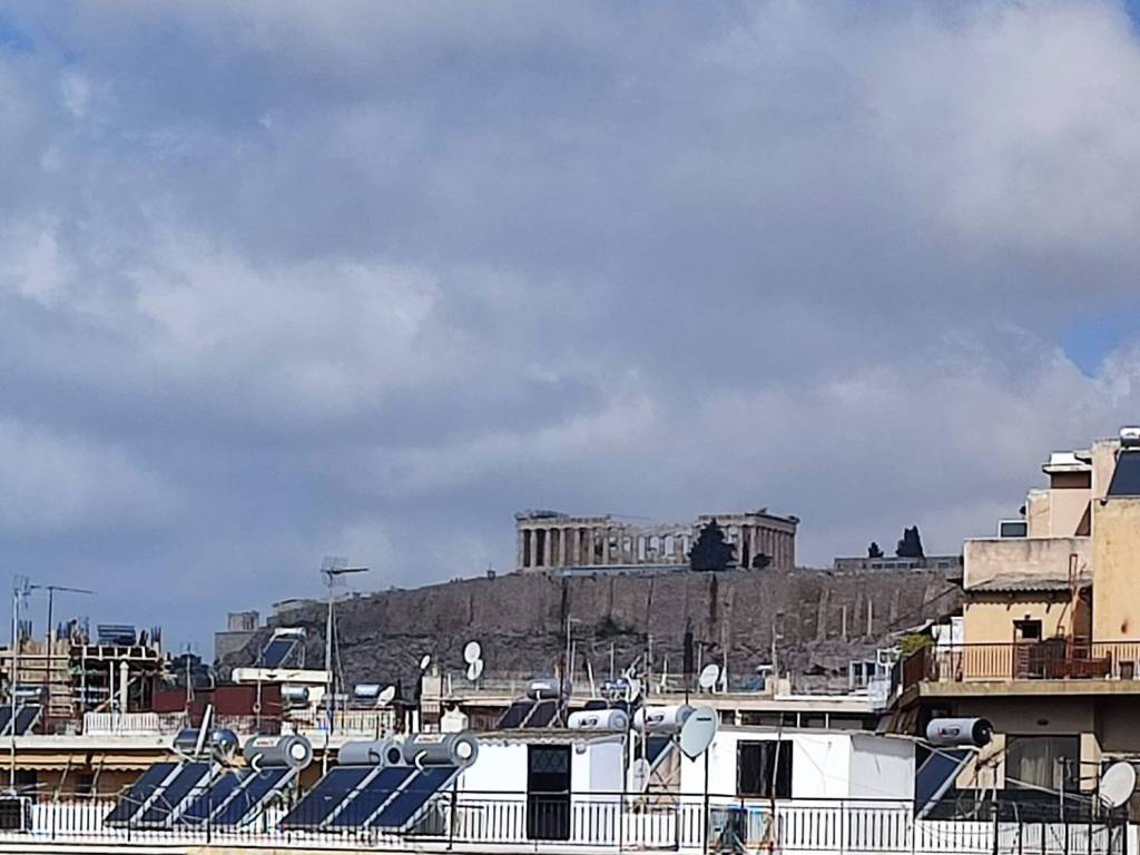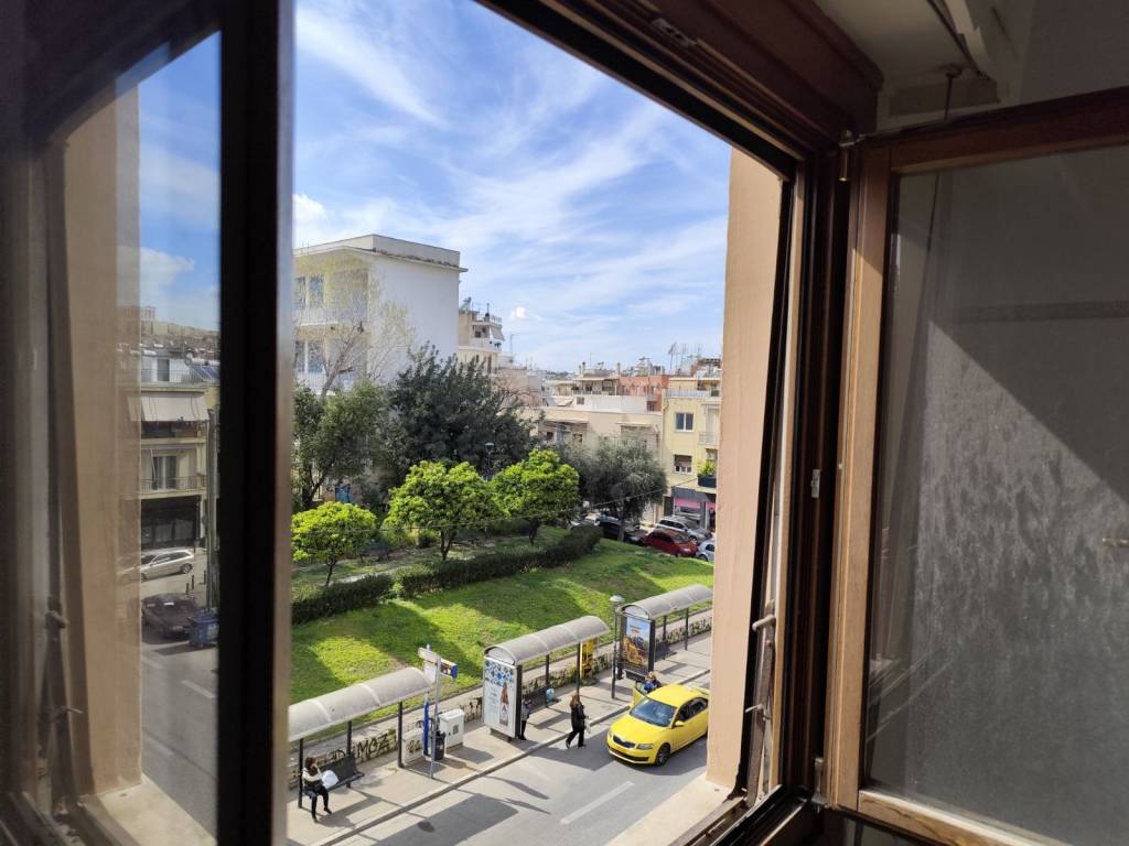 Flat for sale with Acropolis and Lamprakis hill view. Located at Vouliagmenis 55 str, Mets, Athens. 2nd floor, 67 sqm with 2 air-condition. Safety door and double glazed wooden windows. Just 10 mins walking from Acropolis Metro station and 1 min from main bus stations and super market. In very good condition. Semi-renovated.