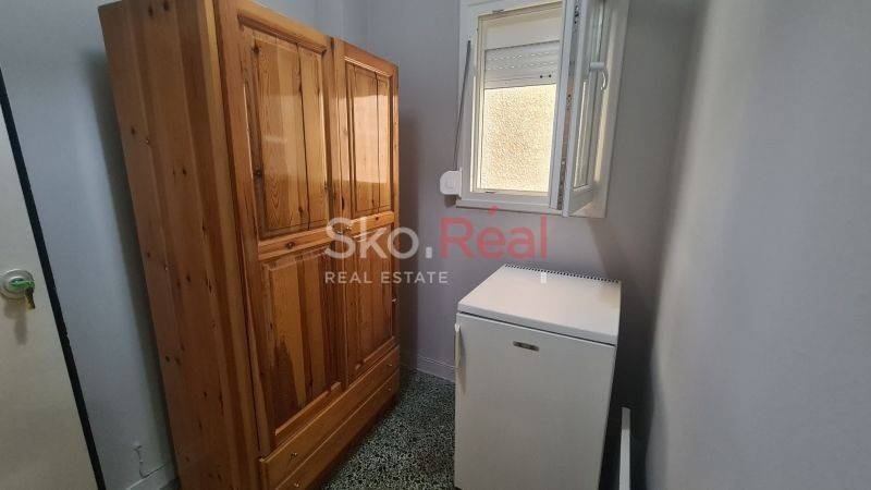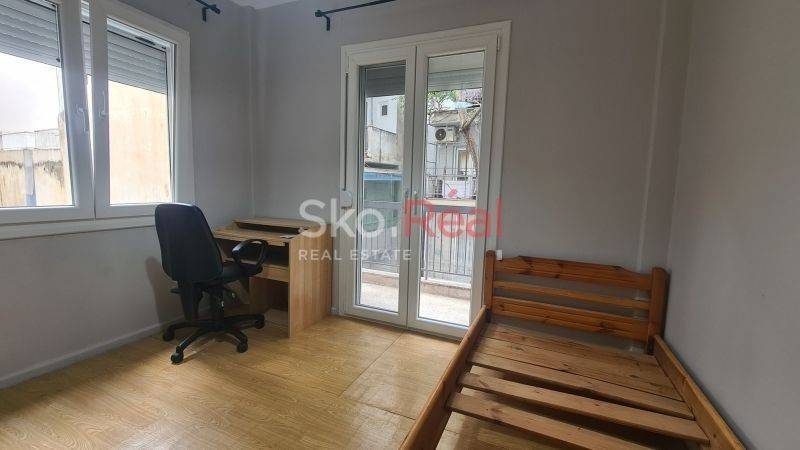 Διαθέτει γραφείο με καρέκλα, κρεβάτι χωρίς το στρώμα και καινούριο ψυγείο.