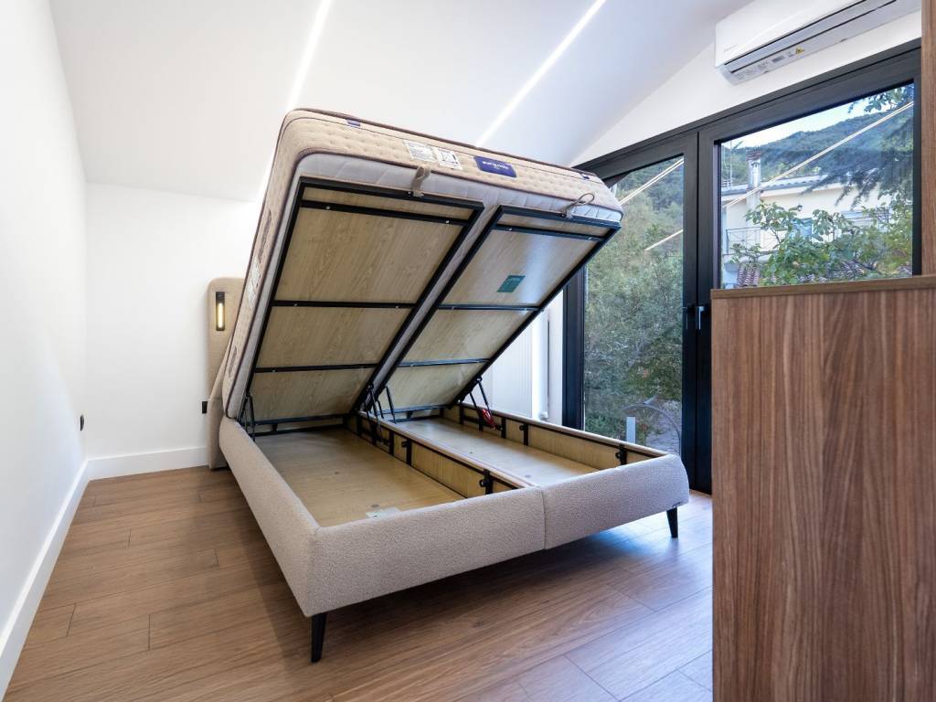 Αυτή η εξαιρετική κατοικία συνδυάζει εντυπωσιακή αρχιτεκτονική με εκλεπτυσμένη κομψότητα, προσφέροντας μια πραγματικά μοναδική εμπειρία. Με 3 ευρύχωρα υπνοδωμάτια και 2 όμορφα διαμορφωμένα μπάνια, το σπίτι έχει σχεδιαστεί με γνώμονα την άνεση και την αισθητική. Οι μεγάλες μπαλκονόπορτες από το δάπεδο έως την οροφή πλημμυρίζουν το εσωτερικό με φυσικό φως, ενώ πλαισιώνουν τη μαγευτική θέα στο βουνό, δημιουργώντας μια ατμόσφαιρα όπου ο εσωτερικός και ο εξωτερικός χώρος ενώνονται αρμονικά. Η υψηλής ποιότητας σχεδιαστική κουζίνα είναι πλήρως εξοπλισμένη με premium ηλεκτρικές συσκευές, custom ντουλάπια και κομψές λεπτομέρειες—ιδανική τόσο για καθημερινή χρήση όσο και για φιλοξενία. Βγείτε έξω στο δικό σας ιδιωτικό καταφύγιο: μια μεγάλη θερμαινόμενη πισίνα, ένα ευρύχωρο patio, και ένας όμορφα διαμορφωμένος κήπος, ιδανικά για στιγμές χαλάρωσης ή για να υποδεχτείτε καλεσμένους με απόλυτη ιδιωτικότητα.