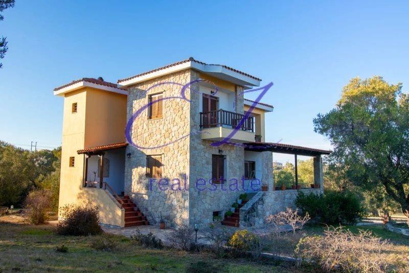 Κωδικος ακινητου 1-98 Πωλείται μοναδική παραδοσιακή βίλλα σε άριστη κατάσταση, 204 τ.μ., και έκταση έξι στρεμμάτων (5962 τ.μ.) με μεγάλα δέντρα και υπέροχη θέα. Βρίσκεται στην Άφυτο, τον ωραιότερο παραδοσιακό οικισμό της Χαλκιδικής, επί της ασφαλτοστρωμένης δημοτικής οδού Αφύτου – Καλλιθέας. Έχει σχεδιαστεί από γνωστό αρχιτέκτονα της Θεσσαλονίκης και μεγάλο εξωτερικό τμήμα της είναι επενδεδυμένο με ντόπια πέτρα Χαλκιδικής. Αποτελείται από τρεις ορόφους (ημιυπόγειο, υπερυψωμένο ισόγειο και 1ο όροφο). Διαθέτει 3 υπνοδωμάτια (το καθένα τους με πρόσβαση σε μπαλκόνι με θέα), δύο μπάνια, χωριστή κουζίνα, σαλοτραπεζαρία και μία υπέροχη μεγάλη πετρόχτιστη βεράντα σκεπασμένη με ξύλινη σκεπή και κεραμίδια. Η στέγη της βίλλας είναι επίσης κεραμοσκεπής. Περιοχή: Ο πανέμορφος γραφικός οικισμός της Αφύτου διαθέτει πολυάριθμα καταστήματα, σουπερμάρκετ, καφετέριες, μπαρ, ταβέρνες, εστιατόρια, φαρμακείο, ιατρείο κτλ. στα οποία έχει πρόσβαση κανείς πεζός εντός 10 λεπτών. Σε απόσταση 350 μ. βρίσκεται υπέροχη παραλία με κρυστάλλινα γαλαζοπράσινα νερά. Σε μικρή απόσταση επίσης βρίσκεται και το χωριό της Καλλιθέας. Έχει απόσταση 7 χλμ. από το Κέντρο Υγείας Κασσανδρείας και 75 χλμ. από τον Διεθνή Αερολιμένα Μακεδονία της Θεσσαλονίκης. Χαρακτηριστικά: Διαθέτει πόρτα ασφαλείας, υψηλής ποιότητας ξύλινα κουφώματα με παντζούρια και σίτες, πατώματα οικοδομής με πλακάκια άριστης ποιότητας, αυτόνομη θέρμανση, κλιματισμό σε ισόγειο και 1ο όροφο, παραδοσιακό πετρόχτιστο τζάκι, κήπο με αυτόματο πότισμα, κλειστή θέση γκαράζ, πολυάριθμες θέσεις πάρκινγκ στην πίσω πλευρά της βίλλας και θέα στην θάλασσα και τον οικισμό. Εξωτερικό: Ολόκληρο το ακίνητο είναι πλήρως περιφραγμένο (350μ.) από τοίχο μπετόν αρμέ επενδεδυμένο με ντόπια παραδοσιακή πέτρα, κάγκελα και συρματόπλεγμα. Διαθέτει δύο εισόδους (μία μεγάλη συρόμενη πύλη για αυτοκίνητα και μια μικρότερη πόρτα για πεζούς) και μεγάλη πλακόστρωτη επιφάνεια με πλάκα Καρύστου όπου μπορούν να παρκάρουν πολλά αυτοκίνητα. Γύρω από την βίλλα υπάρχουν τρεις χτιστές βρύσες και 10 παλαιά ελαιόδεντρα περιτειχισμένα με ντόπια πέτρα. Στην πρόσοψη αλλά και εντός του όλου ακινήτου υπάρχουν διάφορα οπωροφόρα (ελιές, δαμασκηνιές, ροδιές, συκιές κτλ.) και καλλωπιστικά δέντρα και θάμνοι (leylands, πικροδάφνες, λεμονοκυπάρισσα κ.α.). Γύρω από την οικοδομή και στις εισόδους του ακινήτου υπάρχει αυτόματος φωτισμός. Εσωτερικό: Υπερυψωμένο ισόγειο (2 μ. περίπου από το έδαφος): Μεγάλη σαλοτραπεζαρία, τζάκι, ευρύχωρο μπάνιο με τουαλέτα και ντουζιέρα με γυάλινη καμπίνα, αποθηκευτικός χώρος κάτω από την σκάλα, χωριστή κουζίνα, πλατιά εσωτερική σκάλα χτισμένη με μπετόν με ποιοτική ξύλινη επένδυση που οδηγεί στον 1ο όροφο, μεγάλη πέτρινη βεράντα με θέα στον οικισμό και τη θάλασσα. 1ος όροφος: 3 ευρύχωρα, φωτεινά και ψηλοτάβανα υπνοδωμάτια με πρόσβαση σε μπαλκόνια με όμορφη θέα προς τη θάλασσα, τη Σιθωνία και τον οικισμό, χωνευτή ντουλάπα στα δύο δωμάτια και ευρύχωρο μπάνιο με τουαλέτα και ντουζιέρα με γυάλινη καμπίνα. Ημιυπόγειο: Μεγάλος χώρος (66 τ.μ.) με μία θέση γκαράζ (τηλεχειριζόμενη γκαραζόπορτα), μεγάλη αποθήκη και την μονάδα της κεντρικής θέρμανσης. Έχει μεγάλη ευελιξία χρήσης, καθώς μπορεί να διαμορφωθεί με πολλούς τρόπους, π.χ. game room κτλ. Έχει πρόσβαση από την πίσω πλευρά της βίλλας και ο χώρος είναι εντελώς ανεξάρτητος από την υπόλοιπη κατοικία. Στην ανωτέ