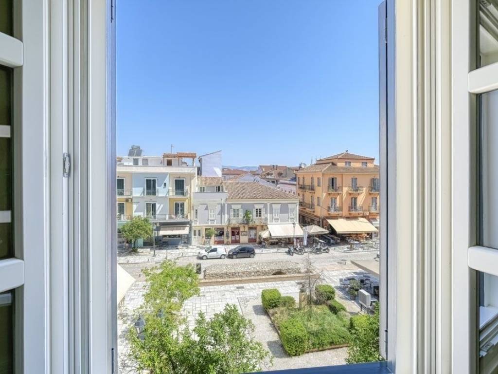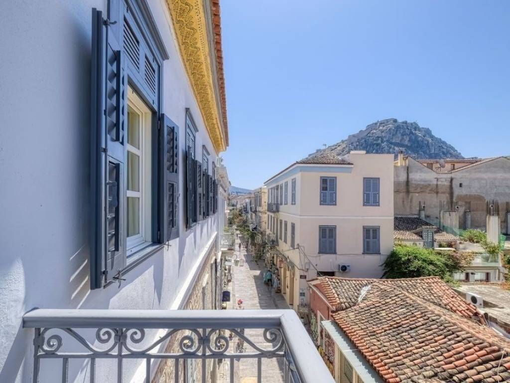 Στην πιο εμβληματική τοποθεσία της Παλιάς Πόλης του Ναυπλίου, αυτό το εντυπωσιακό ρετιρέ διαμέρισμα δευτέρου ορόφου προσφέρει μια μοναδική εμπειρία διαβίωσης. Με ανεμπόδιστη θέα στην ιστορική Πλατεία Συντάγματος και περιτριγυρισμένο από τα πιο αναγνωρίσιμα σημεία αναφοράς της πόλης, η κατοικία των 165 τ.μ. έχει ανακαινιστεί πλήρως το 2024 με υλικά και προδιαγραφές υψηλότατης ποιότητας, συνδυάζοντας τη διαχρονική κομψότητα με τη σύγχρονη πολυτέλεια. Το ακίνητο στεγάζεται σε ιστορικό κτήριο που χρονολογείται από τα τέλη της Δεύτερης Ενετοκρατίας, διατηρώντας αυθεντικά αρχιτεκτονικά στοιχεία που έχουν αναδειχθεί και εναρμονιστεί άψογα με τις σύγχρονες ανέσεις. Το διαμέρισμα διαθέτει τρία υπνοδωμάτια, δύο μπάνια και έναν ευρύχωρο ενιαίο χώρο σαλονιού και κουζίνας. Το μεγάλο μπαλκόνι προσφέρει άμεση πρόσοψη στην Πλατεία Συντάγματος, αποτυπώνοντας τον ζωντανό παλμό της πόλης. Η ανακαίνιση πραγματοποιήθηκε με υλικά υψηλής ποιότητας και εξαιρετική τεχνική επιμέλεια. Δάπεδα από φυσικό ξύλινο παρκέ, ειδικά κατασκευασμένα κουφώματα και παντζούρια από μασίφ ξύλο, καθώς και διπλά ενεργειακά τζάμια με θερμομονωτικές και ηχομονωτικές ιδιότητες, εξασφαλίζουν άνεση και αισθητική. Οι οροφές κοσμούνται με εντυπωσιακά διακοσμητικά στοιχεία, εμπνευσμένα από μια άλλη εποχή, ενώ το φυσικό φως και ο άριστος αερισμός καθιστούν τον χώρο εξαιρετικά ευχάριστο. Η θέα είναι πραγματικά μαγευτική: ένα πανοραμικό κάδρο της Ακροναυπλίας, του Παλαμηδίου, του Τζαμιού, του Αρχαιολογικού Μουσείου, της Μεγάλης Οδού και, φυσικά, της ίδιας της Πλατείας Συντάγματος – ένας ζωντανός καμβάς της πολιτιστικής κληρονομιάς του Ναυπλίου. Είτε ως κύρια κατοικία, είτε ως εξοχική, είτε ως επενδυτική ευκαιρία με υψηλή απόδοση (ιδανική για τουριστική αξιοποίηση), αυτό το ρετιρέ αποτελεί μια σπάνια πρόταση. Δεν πρόκειται απλώς για μια κατοικία – είναι μια αυθεντική έκφραση αρχιτεκτονικής και ιστορικής συνέχειας, προσφέροντας έναν τρόπο ζωής που συνδυάζει τη μεγαλοπρέπεια του παρελθόντος με την άνεση και την κομψότητα του σήμερα. Σε απόσταση αναπνοής από μουσεία, γκαλερί, εκλεκτά εστιατόρια και πολιτιστικά δρώμενα καθ’ όλη τη διάρκεια του έτους, η τοποθεσία παρέχει άμεση πρόσβαση σε όλα όσα καθιστούν το Ναύπλιο έναν από τους πιο περιζήτητους προορισμούς στην Ελλάδα. Ένα ακίνητο σπάνιου χαρακτήρα και ομορφιάς. Τοποθεσία: To Ναύπλιο βρίσκεται στην Ανατολική Πελοπόννησο και υπήρξε πρωτεύουσα του ελληνικού κράτους κατά την περίοδο 1828 – 1833. Το ιστορικό κέντρο του Ναυπλίου έχει χαρακτηριστεί παραδοσιακός οικισμός. Μοναδικά Χαρακτηριστικά: Το Ναύπλιο αποτελεί από τις ωραιότερες πόλεις της Ελλάδας ενώ είναι γνωστή για την πολύ καλά διατηρημένη παλιά πόλη που ξεχωρίζει για τα πανέμορφα πλακόστρωτα στενά της, τα κομψά νεοκλασικά και αρχοντικά κτίρια και τις τούρκικες κρήνες. Ένα από τα πιο σημαντικά σημεία του Ναυπλίου είναι το Κάστρο του Παλαμηδίου που βρίσκεται 216 μέτρα πάνω από την πόλη που διαθέτει την καλύτερη θέα σε όλη τη θάλασσα του Αργολικού και τη μυκηναϊκή πεδιάδα. Προσβασιμότητα: Το Ναύπλιο βρίσκεται μόλις δύο ώρες από το Κέντρο της Αθήνας. Τα ΚΤΕΛ Αργολίδας εξυπηρετούν το Ναύπλιο όπως και τον υπόλοιπο νομό, συνδέοντας το με το Άργος, την Κόρινθο, την Αθήνα και διάφορες περιοχές της Αργολίδας. Το λιμάνι του Ναυπλίου είναι το μεγαλύτερο της ανατολικής Πελοπονν