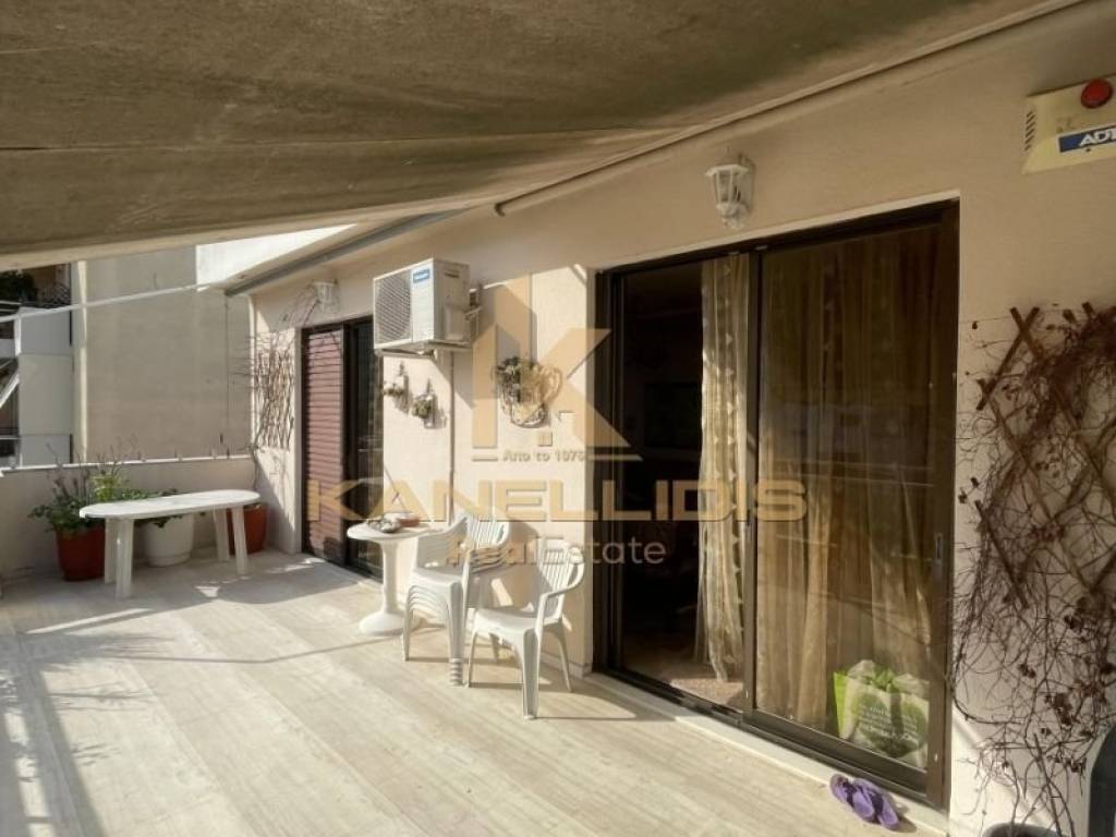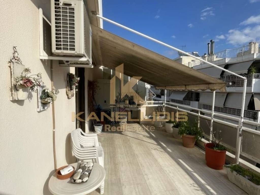 Διαμπερές οροφοδιαμέρισμα - ρετιρέ 4ου ορόφου 98τμ κατασκευής 1978 σε οικογενειακή πολυκατοικία με λίγα διαμερίσματα.. Σε καλή κατάσταση, μερικώς ανακαινισμένο το 2018. Μεγάλη βεράντα προσόψεως 30τμ με θέα σε ανοιχτό ορίζοντα και μπαλκόνια επί ακάλυπτου. Καλή διαρρύθμιση με μεγάλο χώρο σαλόνι τραπεζαρία, ξεχωριστή κουζίνα, 2 υπνοδωμάτια και μπάνιο. Αποθήκη εντός. Ασανσέρ, αλουμίνια, θέρμανση με θερμοσυσσωρευτές, 3 A/C, ηλιακός θερμοσίφωνας, συναγερμός, δάπεδα μαρμάρου. Λίγα κοινόχρηστα .
