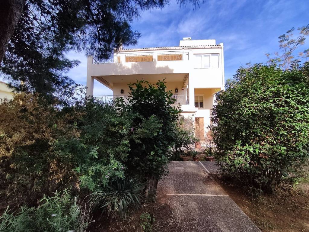 σε οικόπεδο 960τ.μ., μονοκατοικία 570τ.μ. σε τρία επίπεδα και σοφίτα. Στο ισόγειο υπάρχει ένα ανεξάρτητο διαμέρισμα, με είσοδο μέσα από την κύρια κατοικία και έχει και δική του ανεξάρτητη πρόσβαση από τον κήπο. Αποτελείται από σαλόνι, δύο υπνοδωμάτια, δύο μπάνιο και μεγάλη κουζίνα. Έχει τζάκι, κουφώματα αλουμινίου, διπλά τζάμια, πλακάκια σε όλους τους χώρους και εντοιχισμένες ντουλάπες. Με έξοδο στον κήπο και παράθυρα. Στον 1ο όροφο βρίσκεται ο χώρος υποδοχής (σαλόνι, τραπεζαρία), ανεξάρτητη κουζίνα με χώρο φαγητού και wc. Στο σαλόνι υπάρχει τζάκι, όλος ο χώρος έχει μαρμάρινο δάπεδο και υπάρχουν δύο μεγάλες βεράντες (μία στο χώρο υποδοχής και μία στην κουζίνα). Έχει μεγάλα ανοίγματα με θέα. Στον 2ο όροφο είναι τρία υπνοδωμάτια (το ένα master), 2 μπάνια, ένα μικρό καθιστικό και το laundry room. Τα υπνοδωμάτια έχουν εντοιχισμένες ντουλάπες και ξύλινο πάτωμα. Σε αυτό το επίπεδο υπάρχει επίσης μία μεγάλη βεράντα. Στο τρίτο επίπεδο είναι η σοφίτα. Έχει δύο χώρους και ένα μπάνιο. Το ακίνητο έχει ενδοδαπέδια θέρμανση (πετρελαίου, με αυτονομία ανά επίπεδο), μεγάλη εσωτερική μαρμάρινη σκάλα, υποδομή για ασανσέρ, συναγερμό, οπτική ίνα, ηλιακό θερμοσίφωνα, αποθηκευτικούς χώρους, θέσεις στάθμευσης, κεραμοσκεπή και κήπο.