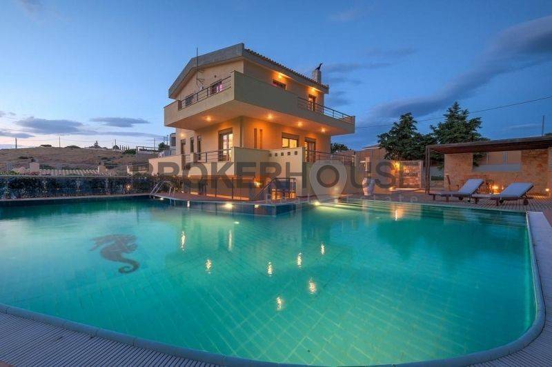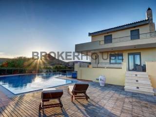 Πολυτελήςβίλα εντός οικοπέδου 4000τμ. Διαθέτοει πισίνα 87τμ, γεώτρηση, δεξαμενή 60κιβ. κήπο με δέντρα και γκαζόν.