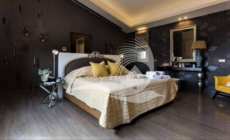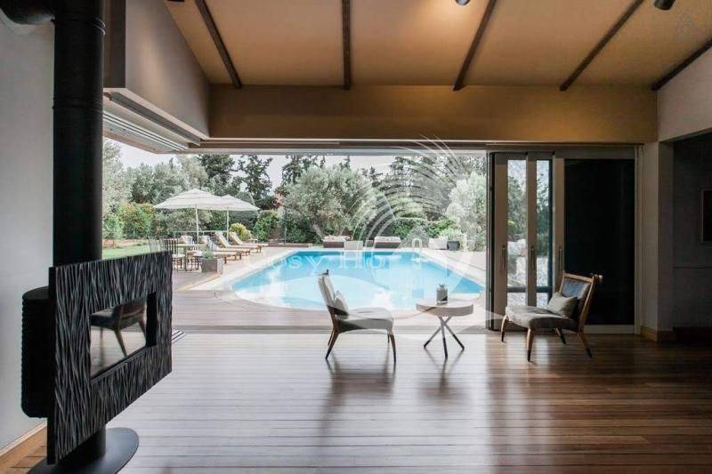 1ος όροφος: Ιδιωτική σουίτα με δυο γκαρνταρόμπες και μεγάλο μπάνιο με deck στη ντουζιέρα, υπνοδωμάτιο ή γραφείο Ισόγειο: κύριο σαλόνι κατοικίας πολύ ψηλοτάβανο με δύο καθιστικά, τζάκι εντοιχισμένο, μεγάλα ανοίγματα με θέα και πρόσβαση στον κήπο και την πισίνα, γραφείο με θέα πισίνα, ειδικό σαλόνι HOME CINEMA με θέα ευρεία θέα στην πισίνα και τον κήπο, διαθέτει εγκατεστημένο Home Theatre και επιπλέον τεράστια επίπεδη τηλεόραση 100, όλα επιπέδου Hi-End, ανεξάρτητη κουζίνα τραπεζαρία 12 ατόμων Hμιυπόγειο: master με waking closet και μπάνιο, δύο ακόμα master υπνοδωμάτια δωμάτιο ξενώνας με μπάνιο καθημερινό καθιστικό tv room, playroom, που αποτελεί και χώρο για πάρτι με ειδικά εγκατεστημένο σύστημα ήχου, κονσόλας και άλλου επαγγελματικού εξοπλισμού, αίθριο για φυσικό φωτισμό, δωμάτιο υπηρεσίας laundry πολύ μεγάλο με χώρο εργασίας, boiler room γκαρνταρόμπα μεγάλη Yπόγειο Gκαράζ για 2 μεγάλα αυτοκίνητα και εξωτερικά αποθήκη μηχανοστάσιο πισίνας εξωτερικός χώρος: υπέροχα διαμορφωμένος περιβάλλον χώρος με γκαζόν και ελαιόδεντρα, απεριόριστος χώρος για party και δεξιώσεις, πισίνα 20 μέτρων μήκους με 2 jacuzzi, εξωτερική ντουζιέρα wc ξένων εξωτερικό στεγασμένο πάρκιν 4 θέσεων Ξεχωριστό σπίτι φύλακα δίπλα στην είσοδο με κουζινάκι με υπνοδωμάτιο και μπάνιο Χαρακτηριστικά Κατασκευής: Ενδοδαπέδια θέρμανση με φυσικό αέριο και αυτονομία ανα επίπεδο Σύστημα κλιματισμού Ψύξης-Θέρμανσης καναλάτο τύπου VRV σε όλη την κατοικία Συναγερμός Κλειστό κύκλωμα Παρακολούθησης με κάμερες εξωτερικά παντού. Εσωτερικό ασανσέρ Ηλεκτρογεννήτρια 2 γεωτρήσεις Αυτόματο πότισμα Εξωτερικός συναγερμός με ραντάρ και ακτίνες Θυροτηλεόραση Δορυφορική και καλωδιακή τηλεόραση, internet, Wi-Fi