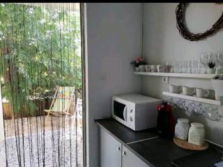 Μικρο σπίτι ανεξάρτητο και χωρίς κοινόχρηστα με 1 κρεβατοκάμαρα και καθιστικό .Διαθέτει κήπο. Είναι επιπλωμένο με ένα διπλό κρεβάτι εναν γωνιακο καναπέ και ντουλαπα .Ηλεκτρικές συσκευές: ψυγειο φουρνος μικροκυμάτων φουρνακι. Εκτός από το aircodition έχει και σομπα ξύλου Παράθυρααλουμινιου με διπλα τζάμια.Καταλληλο για μέχρι 2 άτομα. Διαθέσιμο από 5 Ιανουαρίου