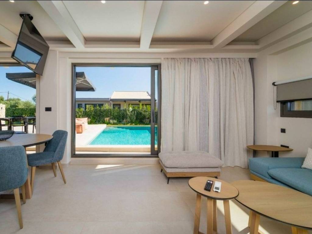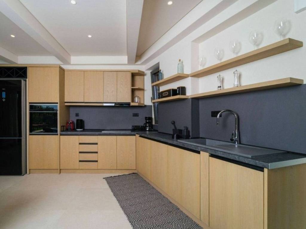 Βίλα 168 τ.μ. σε οικόπεδο 800 τ.μ. Η βίλα είναι ευάερη, ευήλια και πολυτελής Παρέχει απόλυτη ιδιωτικότητα, γαλήνη και ομορφιά. Το πρώτο επίπεδο φιλοξενεί ένα υπνοδωμάτιο με ιδιωτικό μπάνιο, τον χώρο ψυχαγωγίας και τον χώρο της σάουνας. Είναι ιδανικό για τα έφηβα παιδιά σας που δεν θα πλήξουν στιγμή, για τα μέλη της προσωπικής σας ασφάλειας και φροντίδας καθώς και για άτομα που επιζητούν την απομόνωση για κάποιες ώρες από την υπόλοιπη παρέα του σπιτιού. Λόγω της υπόγειας κατασκευής του θεωρείται το πιο δροσερό επίπεδο της κατοικίας. Επικοινωνεί με τα άλλα δύο επίπεδα μέσω εξωτερικής σκάλας. Το υπνοδωμάτιο διαθέτει δύο μονά κρεβάτια με τη δυνατότητα να μετατραπούν σε διπλό κρεβάτι, μπουντουάρ με καθρέπτη που εξυπηρετεί τις ανάγκες και για χώρο γραφείου, ανοιχτή ντουλάπα με αποθηκευτικούς χώρους, smart τηλεόραση 32 ιντσών και ιδιωτικό μπάνιο με ντουζιέρα καταρράκτη και επώνυμα προϊόντα περιποίησης. Χαλαρώστε στον μεγάλο καναπέ του χώρου ψυχαγωγίας και απολαύστε το home cinema με την smart τηλεόραση των 60 ιντσών βλέποντας ταινίες, παίζοντας ηλεκτρονικά παιχνίδια στο Playstation ή ακούγοντας μουσική μέσω Bluetooth από το ασύρματο ηχείο που μπορείτε να μεταφέρετε και στους υπόλοιπους χώρους. Tόσο στο συγκεκριμένο χώρο όσο και σε άλλα σημεία της βίλας υπάρχει η δυνατότητα για ενσύρματη σύνδεση στο διαδίκτυο καθώς και η συνεχής πρόσβαση στο ασύρματο δίκτυο (Wi-Fi). Απολαύστε τη μοναδική εμπειρία της σάουνας στον ειδικά διαμορφωμένο χώρο και αφήστε το σώμα σας να χαλαρώσει, να αποφορτιστεί και να αισθανθεί τα πολλαπλά θεραπευτικά οφέλη της αρχαίας αυτής μεθόδου. Το δεύτερο επίπεδο είναι στο ύψος του κήπου και της εντυπωσιακής πισίνας. Φιλοξενεί τον ενιαίο χώρο της κουζίνας, της τραπεζαρίας και του καθιστικού, ένα μεγάλο μπάνιο και ένα υπνοδωμάτιο με ιδιωτικό μπάνιο και βεράντα. Η κουζίνα είναι πλήρως εξοπλισμένη διαθέτοντας ηλεκτρικό φούρνο με μαγειρικές εστίες και άνετο χώρο για να παρασκευάσετε κάθε γεύμα σας. Τόσο η τραπεζαρία του σπιτιού όσο και η τραπεζαρία του κήπου θα σας προσφέρουν ένα άνετο γεύμα με την οικογένειά σας. Το πλυντήριο πιάτων θα σας απαλλάξει από τον περιττό χρόνο στην κουζίνα. Μπορείτε οποιαδήποτε στιγμή να χαλαρώσετε στο χώρο του καθιστικού βλέποντας δορυφορική τηλεόραση στην smart τηλεόραση των 43 ιντσών, σερφάροντας στο διαδίκτυο μέσω του ασύρματου ή του ενσύρματου ίντερνετ ή ακούγοντας μουσική μέσω του ασύρματου ηχείου. Στο ίδιο επίπεδο υπάρχει το μπάνιο που μπορεί να χρησιμοποιηθεί από όλους τους ενοίκους και παρέχει τη δυνατότητα να πλύνετε τα ρούχα σας στο πλυντήριο ρούχων. Το υπνοδωμάτιο διαθέτει διπλό κρεβάτι μεγέθους 160Χ200 για άνετο ύπνο, μπουντουάρ με καθρέπτη που εξυπηρετεί τις ανάγκες και για χώρο γραφείου, ανοιχτή ντουλάπα με αποθηκευτικούς χώρους, smart τηλεόραση 32 ιντσών, ιδιωτικό μπάνιο με ντουζιέρα καταρράκτη και επώνυμα προϊόντα περιποίησης και ιδιωτική βεράντα με τραπέζι και καρέκλες και θέα στον κήπο. Ο εξωτερικός χώρος αποτελεί προέκταση του δεύτερου επιπέδου. Το χρώμα και η δροσιά της πισίνας δεν αφήνει κανέναν ασυγκίνητο. Κάντε τις βουτιές σας και χαλαρώστε στις αναπαυτικές ξαπλώστρες, στην τραπεζαρία, στο γκαζόν, κάτω από τις υπεραιωνόβιες ελιές. Μπορείτε ακόμη να σχεδιάσετε μια βραδιά barbeque στη χτιστή κατασκευή που βρίσκεται στον κήπο και διαθέτει όλα τα απαραίτητα εργαλεία. Το τρίτο επίπεδο επικοινωνεί με το 
