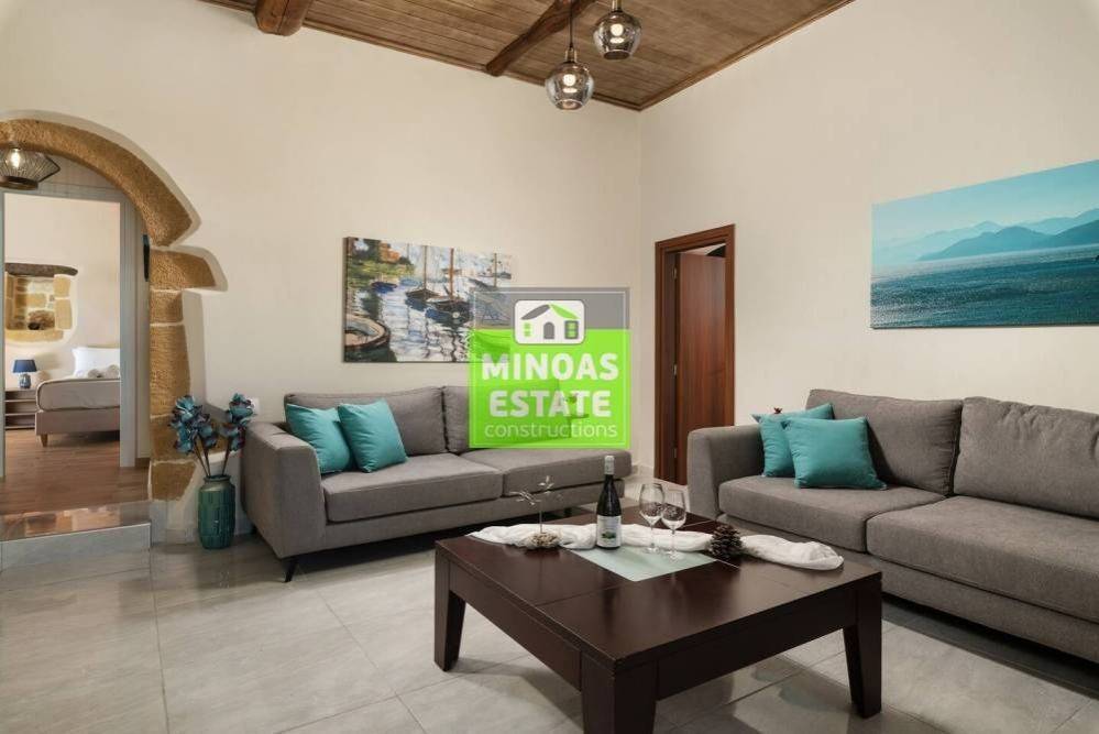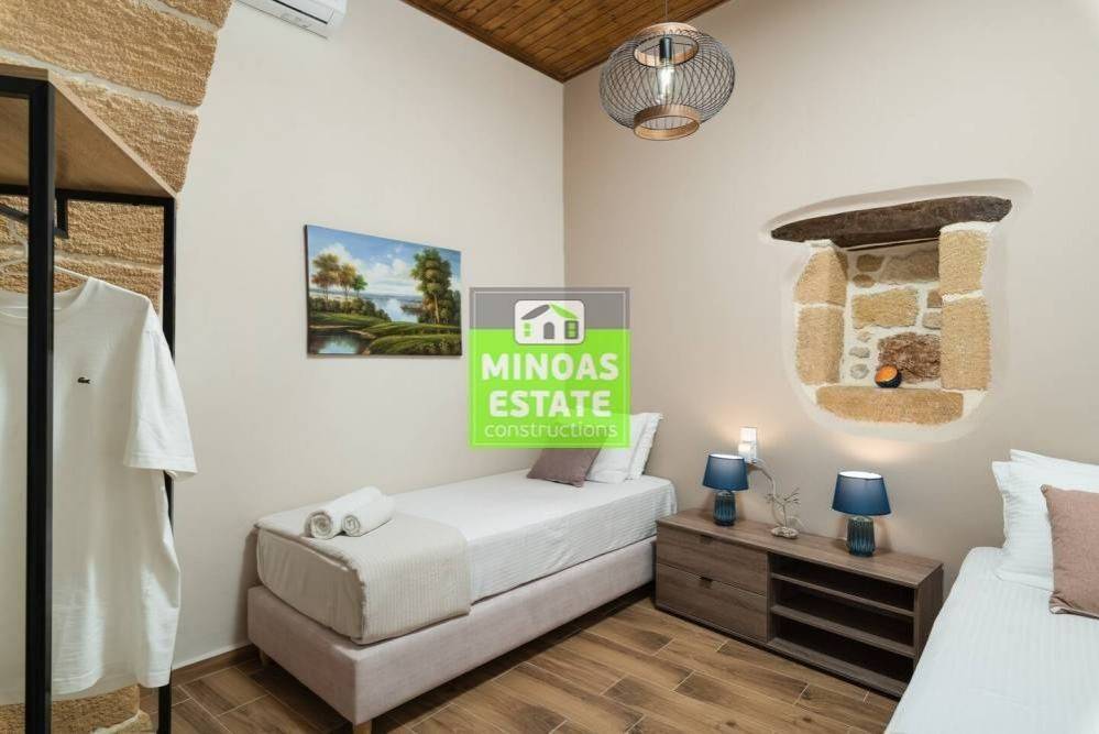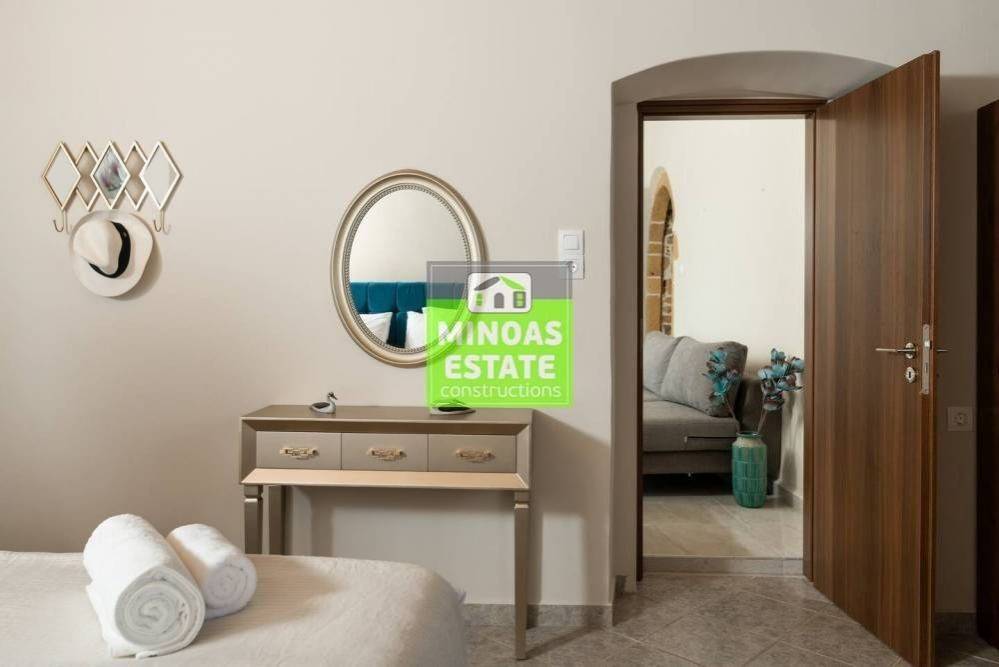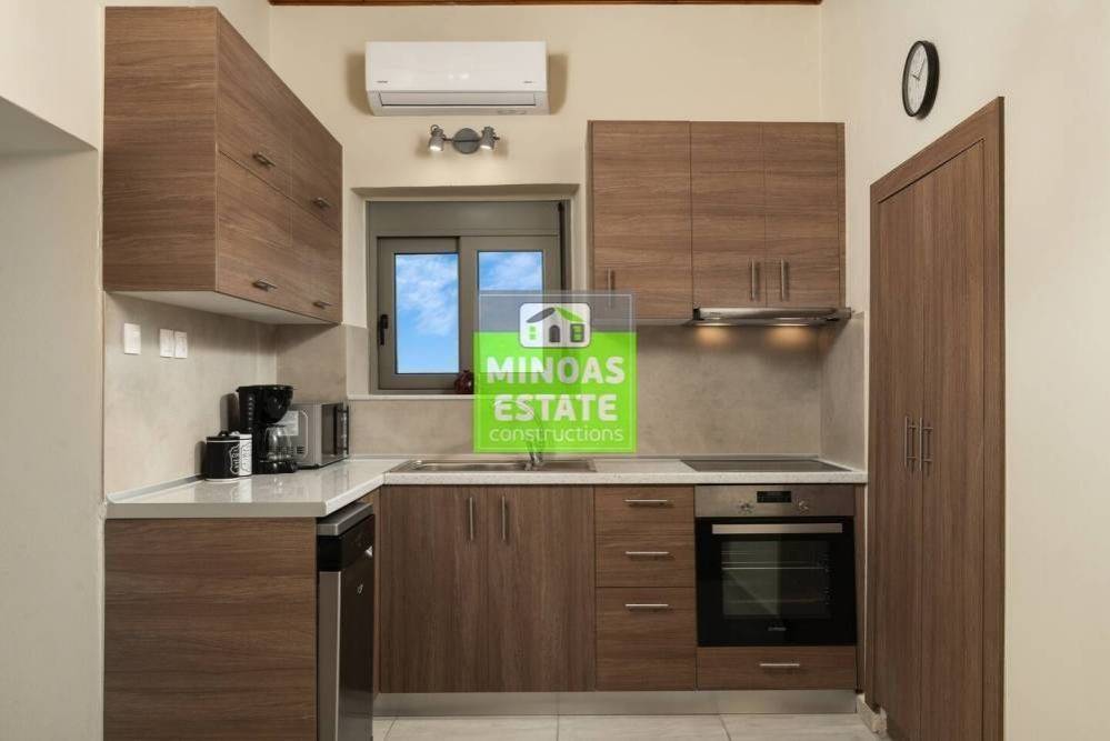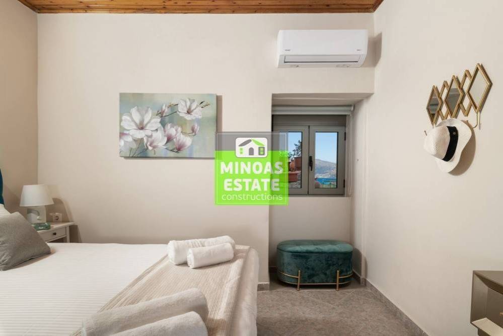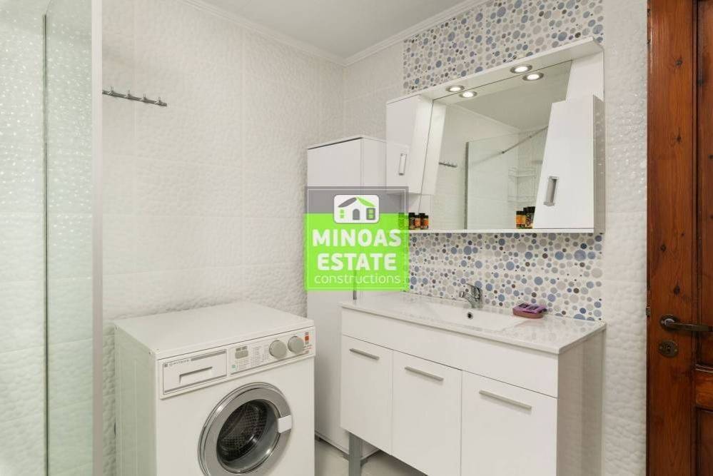 Kissamos, Center: For rent bright Apartment 100 sq.m. on the ground floor with autonomous oil heating. It consists of 2 bedrooms, 1 kitchen, 1 living room and bathroom. It is fully furnished, equipped, with electrical appliances, built in 2000, painted, close to TOWN, SUPERMARKET, PHARMACY, SCHOOL and has a sea view, aluminum frames with double glazing, security door, air conditioning, energy class B, tiled floors, screens, solar water heater. It is ideal for families or workers. Price €600 Property Code: #E-200942