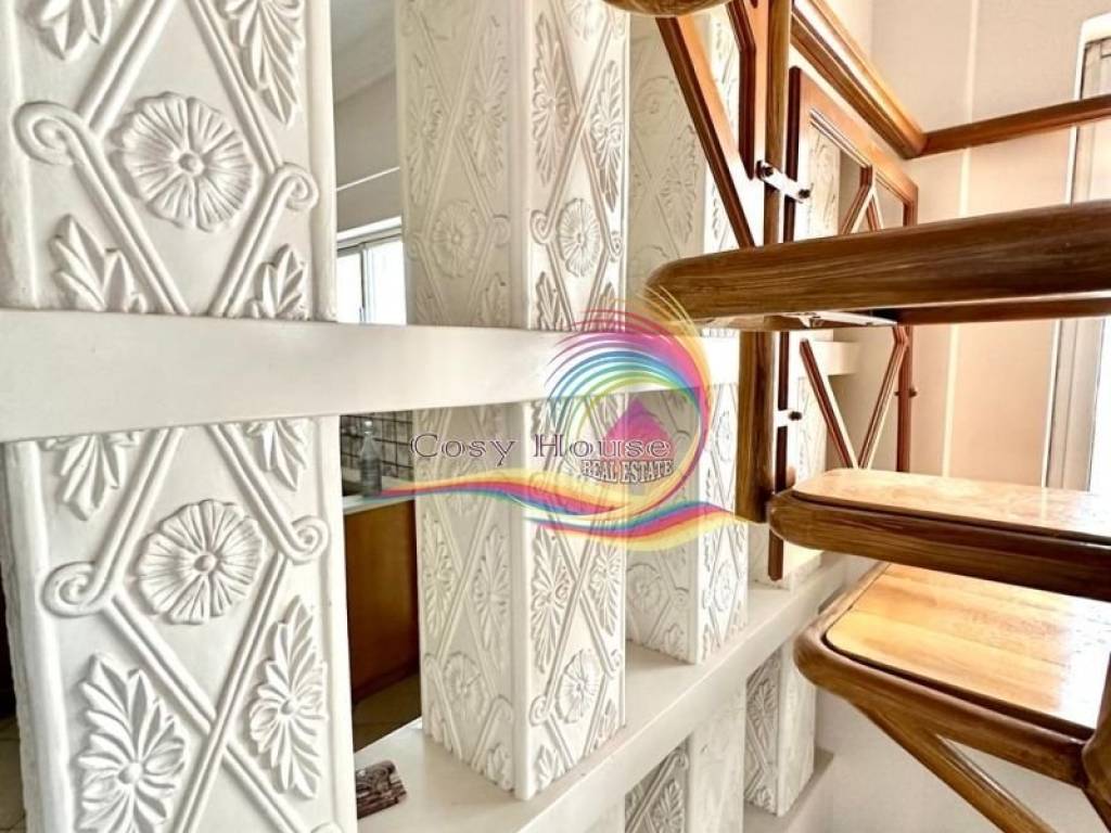 Η κατοικία διαθέτει τρεις άνετες κρεβατοκάμαρες, δύο μπάνια, ευρύχωρο σαλόνι και λειτουργική κουζίνα, ενώ η εσωτερική σκάλα δημιουργεί ιδανικό διαχωρισμό μεταξύ χώρων υποδοχής και ιδιωτικότητας. Τα δάπεδα από ξύλο και πλακάκι, τα μεγάλα ανοίγματα και τα μπαλκόνια ενισχύουν την αίσθηση άνεσης και ποιότητας, προσφέροντας ιδανικές συνθήκες για σύγχρονη αστική διαβίωση.