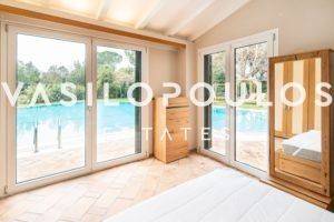 Η μονοκατοικία βρίσκεται σε ήσυχη και προνομιακή τοποθεσία στην Νέας Ερυθραίας, σε οικόπεδο 3.255 τ.μ., με συνολική επιφάνεια κτισμάτων 980 τ.μ. Αποτελείται από δύο ανεξάρτητες κατοικίες και διαθέτει μεγάλη πισίνα υπερχείλισης 220 τ.μ., τοποθετημένη μεταξύ των κτισμάτων. Η κύρια μονοκατοικία στην Νέα Ερθραία έχει επιφάνεια 720 τ.μ. και περιλαμβάνει χώρους υποδοχής, τραπεζαρία, κουζίνα, καθιστικά, εκ των οποίων ένα με τζάκι, δωμάτιο υπηρεσίας με μπάνιο και ανεξάρτητο χώρο πλυντηρίου. Στα ανώτερα επίπεδα αναπτύσσονται τέσσερα master υπνοδωμάτια με ιδιωτικά μπάνια. Η δεύτερη κατοικία, επιφάνειας 260 τ.μ., είναι πλήρως ανακαινισμένη και αναπτύσσεται σε δύο επίπεδα. Περιλαμβάνει τρία υπνοδωμάτια με ιδιωτικά μπάνια, καθιστικό–τραπεζαρία, κουζίνα, ξενώνα, playroom, WC και laundry room. Ο εξωτερικός χώροςτης μονοκατοικίας στην Νέα Ερυθραία είναι διαμορφωμένος με κήπους, καθιστικά, πέτρινο φούρνο και χώρο BBQ. Το ακίνητο διαθέτει δύο ανεξάρτητες εισόδους και ξεχωριστούς χώρους στάθμευσης. Η Νέα Ερυθραία, αποτελεί σταθερά επιλογή υψηλού επιπέδου κατοικίας και επένδυσης, με διαχρονική αξία συνδυάζοντας φυσικό περιβάλλον με άμεση πρόσβαση σε αγορές, εστίαση, διεθνή σχολεία και βασικούς οδικούς άξονες.