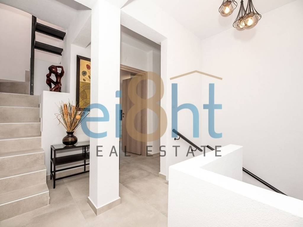 Στο ισόγειο υπάρχει σαλόνι, χωριστή κουζίνα, τραπεζαρία και τουαλέτα. Στον πρώτο όροφο υπάρχουν τρία δωμάτια και τρία μπάνια ( το κάθε δωμάτιο έχει δικό του μπάνιο).