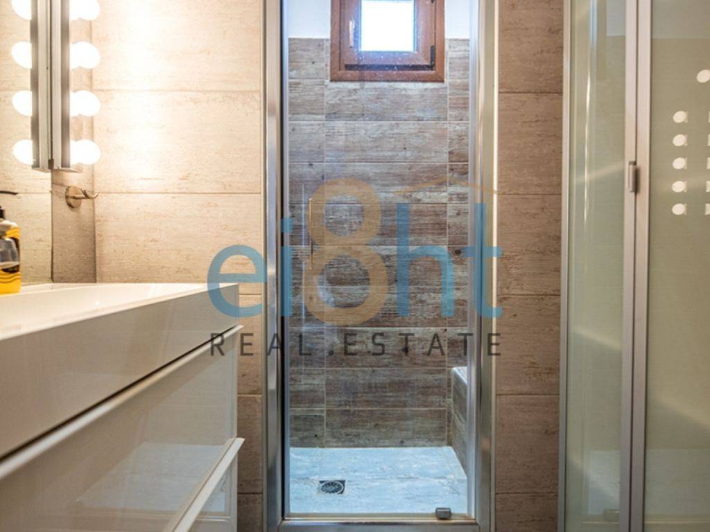 Ανακαινίστηκε πρόσφατα και διαθέτει συνθετικά κουφώματα, θωρακισμένη πόρτα, σίτες, κλιματιστικά σε όλους τους χώρους, δύο τζάκια, ατομική θέρμανση πετρελαίου, ηλιακό θερμοσίφωνα, τέσσερις κλειστές θέσεις στάθμευσης.