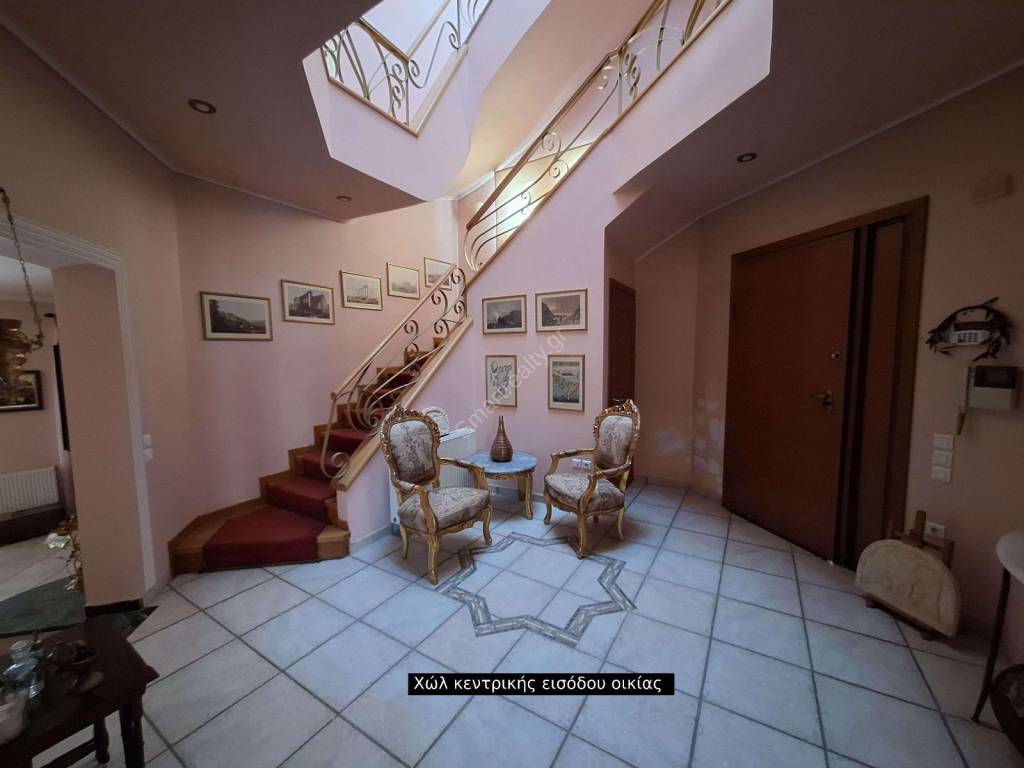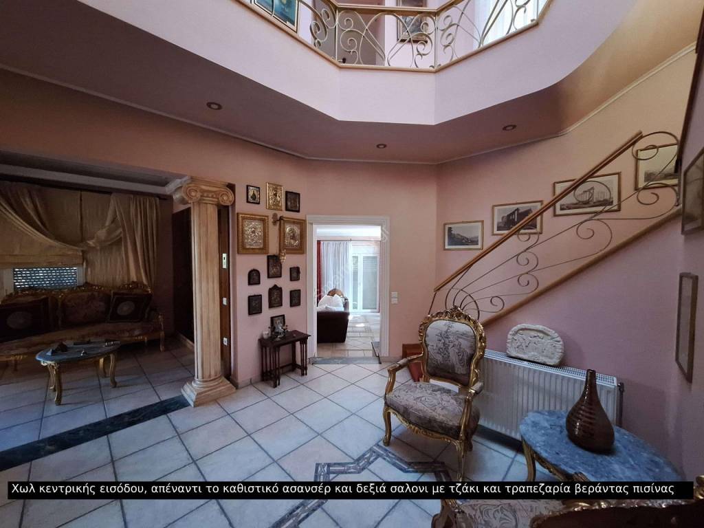 Σε προνομιακή θέση, κοντά στην πλατεία Θρακομακεδόνων, εντός οικοπέδου ενός στρέμματος., προσφέρεται προς πώληση εξαιρετικής κατασκευής μονοκατοικία τριών επιπέδων, με μεγάλη, βαθιά πισίνα και ανεξάρτητη ημιτελή (κλειστή) μεζονετα 125τ.μ. στο πίσω μέρος του οικοπεδου, έτσι ωστε αυτές οι δύο κατοικίες να έχουν ανάμεσά τους την πισίνα. Πρόκειται για ιδιοκτησία με έντονο κλασσικό χαρακτήρα, άνετους χώρους υποδοχής και υψηλό επίπεδο αυτονομίας, ιδανική τόσο για 2 οικογενειακές κατοικίες όσο και για επενδυτική αξιοποίηση. Το υπερυψωμένο Ισόγειο – 150 τ.μ. Η πρόσβαση γίνεται από την κεντρική είσοδο με πόρτα ασφαλείας, η οποία οδηγεί σε ιδιαίτερα ευρύχωρο χωλ υποδοχής 5 ατόμων (καθήμενων σε αναμονή) , σχεδιασμένο ως αυτόνομος προσωρινός χώρος υποδοχής. Σε αυτό το χωλ αναπτύσσονται δύο καθιστικά: ένα πρώτο με γαλλικού τύπου πολυθρόνες και μαρμάρινο τραπέζι, και ένα δεύτερο με γαλλικού τύπου καναπέ, τοποθετημένο μπροστά από το ασανσέρ, δίνοντας έμφαση στην αίσθηση άνεσης και κύρους του χώρου υποδοχής. Αριστερά της εισόδου, το χωλ οδηγεί σε μεγάλο ανοικτό σαλόνι, με εντυπωσιακό τζάκι και εντοιχισμένο ημικυκλικό καναπέ, χώρο ζεστό και φιλόξενο για καθημερινή χρήση. Από εδώ υπάρχει εσωτερική επικοινωνία με την ανεξάρτητη κουζίνα, η οποία διαθέτει και δική της ξεχωριστή είσοδο με πόρτα ασφαλείας. Η κουζίνα λειτουργεί ως αυτόνομο living space, με τραπεζαρία φαγητού και εντοιχισμένο καθιστικό, συνδυάζοντας πρακτικότητα και άνεση. Απέναντι και δεξιά της εισόδου, κατεβαίνοντας τρία μαρμάρινα σκαλοπάτια, αποκαλύπτεται ο πιο επίσημος χώρος υποδοχής: σαλόνι με τζάκι και bar, σε άμεση σύνδεση με τραπεζαρία δέκα ατόμων. Δύο μεγάλες μπαλκονόπορτες οδηγούν σε ευρύχωρη ημικυκλική βεράντα, με άμεση πρόσβαση στη μεγάλη και φωτιζόμενη πισίνα, δημιουργώντας ιδανικές συνθήκες φιλοξενίας και κοινωνικών συγκεντρώσεων. Υπάρχει WC επισκεπτών στον χώρο. Τα δάπεδα είναι από επιλεγμένα πλακάκια, ενώ η δρύινη εσωτερική σκάλα και το ασανσέρ εξυπηρετούν όλους τους ορόφους. Το ακίνητο δίδεται επιπλωμένο ως έχει στις φωτογραφίες (έπιπλα και ηλεκτρικές συσκευές). 1ος Όροφος – 130 τ.μ. Ο όροφος λειτουργεί ως ιδιωτική ζώνη ημι-ανεξάρτητης διαμονής. Η πρόσβαση γίνεται μέσω σκάλας ή ασανσέρ, καταλήγοντας σε φωτεινό κεντρικό χωλ με εντοιχισμένη ντουλάπα και διακριτικό πολυκουζινάκι, πολυθρόνα μασάζ καθώς και έξοδο σε μπαλκόνι. Η master σουίτα περιλαμβάνει υπνοδωμάτιο με μπαλκόνι, ξεχωριστό χώρο dressing, ιδιωτικό μπάνιο με ντουζιέρα, ενώ σε ανεξάρτητο τμήμα βρίσκεται μπανιέρα τύπου jacuzzi, προσφέροντας εμπειρία προσωπικού spa. Σε ξεχωριστή πτέρυγα βρίσκονται δύο ακόμη υπνοδωμάτια, καθένα με ιδιωτικό μπάνιο (ντουζιέρα) και δικό του μπαλκόνι, εξασφαλίζοντας πλήρη αυτονομία. Ξύλινα δάπεδα και προσεγμένος φυσικός και τεχνητός φωτισμός ολοκληρώνουν την αίσθηση ηρεμίας. Η δρύινη σκάλα με φωτιζόμενο βιτρό στο ταβάνι (χρήζει επισκευής) οδηγεί σε αίθριο στην ταράτσα, όπου βρίσκεται το μηχανοστάσιο του ασανσέρ. Ημιυπόγειο – 160 τ.μ. Περιλαμβάνει ανεξάρτητο διαμέρισμα 115 τ.μ. με καθιστικό, κουζίνα, χώρο laundry, μπάνιο με μπανιέρα, δύο υπνοδωμάτια και χώρο γραφείου. Επιπλέον, υπάρχει γκαράζ δύο θέσεων και μεγάλη αποθήκη με πρόσβαση στο μηχανοστάσιο της πισίνας. Πλακάκια σε όλους τους χώρους. Ανεξάρτητη ημιτελης μεζονέτα – 125 τ.μ. Στο πίσω μέρος του οικοπέδου, αντικρυστά της πισίνας, βρίσκεται ανεξάρτητ