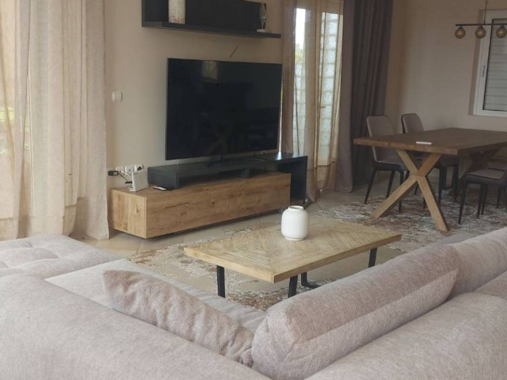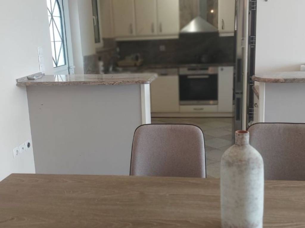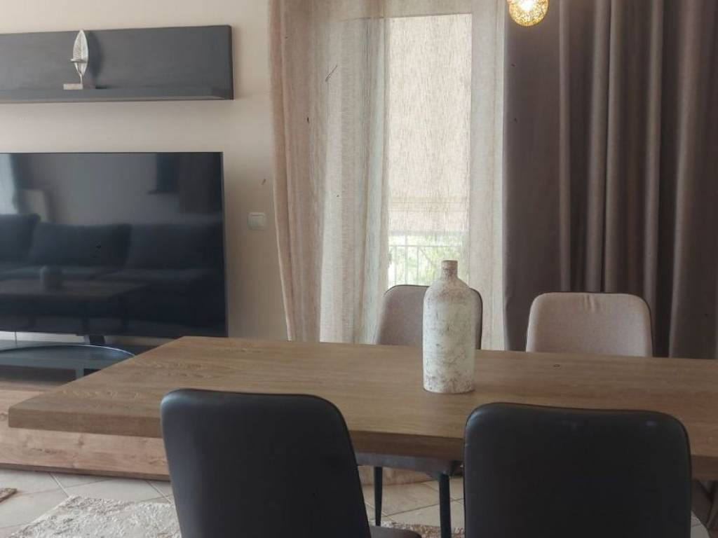 Το σπιτι βρίσκεται σε μια πλαγιά οικοπέδου 1500 τ.μ με θέα βουνό και θάλασσα επί της Αγίου Δημητρίου στην Αγία Μαρίνα μέσα στο πράσινο . Το σπίτι είναι επιπλωμένο με καινούργια έπιπλα , έχει αυτόνομη θέρμανση ,air conditioning σε όλα τα δωμάτια και τζάκι. Διαθέτει ηλιακό θερμοσίφωνα δύο μπάνια , το ένα βρίσκεται μέσα στην κρεβατοκάμαρα, 'Εχει μεγάλο μπαλκόνι μπροστά με θέα το βουνό αλλά και τη θάλασσα αριστερά , ενω από την πίσω πλευρά που είναι οι κρεβατοκάμαρες βγαίνει κατευθείαν στην πίσω αυλή και τον κήπο , διότι το κάτω διαμέρισμα είναι το μισό υπόσκαφο. Έχει προσωπικό πάρκινγκ Δεν έχει κοινόχρηστα. Υπάρχει αποθηκούλα στην πίσω αυλή
