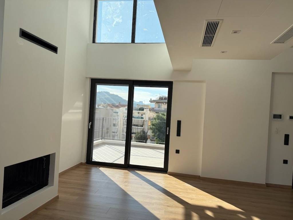 Πωλείται νεόδμητη μεζονέτα 113 τ.μ., κατασκευής 2025 , 5ου & 6ου ορόρφου, προσόψεως πλησίον πλατείας Μανδηλαρά και ηλεκτρικού σταθμού Νέου Ηρακλείου. Το minimal αισθητικής ακίνητο βρίσκεται σε σύγχρονο συγκρότημα υψηλών προδιαγραφών και με εύκολη πρόσβαση στην Αττική οδό. Η μεζονέτα αποτελείται από ένα ενιαίο χώρο καθιστικό-τραπεζαρία-κουζίνα, 1 υπνοδωμάτια, 1 μπάνιο στον κάτω όροφο (5ος)και 2 ακόμη υπνοδωμάτια με 1 μπάνιο στον επάνω όροφο (6ος). Διαθέτει smart λειτουργείες, τζάκι, βεράντες, αποθήκη και υπόγειο παρκινγκ με φορτιστη ηλ. οχήματος.