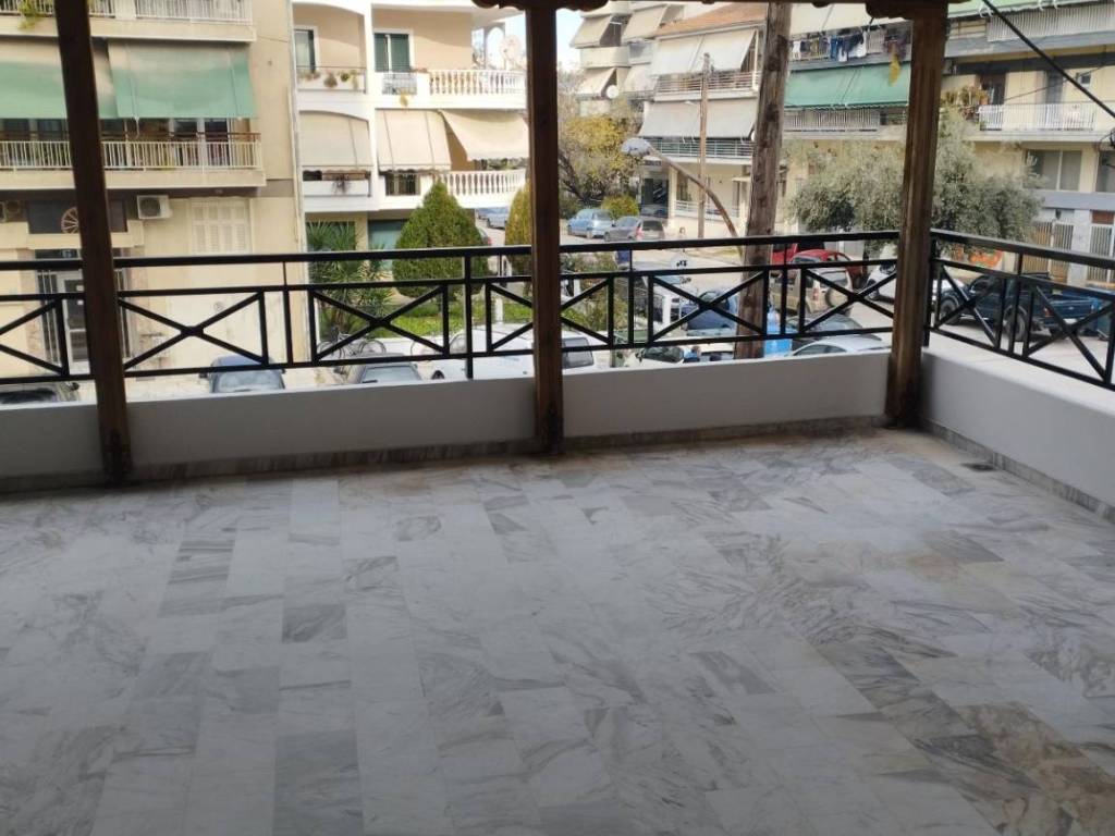 Διαμέρισμα 1ου ορόφου 100 τ.μ σε άριστη κατάσταση, φρεσκοβαμμένο, με πολύ μεγάλη βεράντα 45 τ.μ με κεραμοσκεπή σε ήσυχη περιοχή, 10 λεπτά με τα πόδια από το κέντρο. Λαική αγορά στα 50μ. Σούπερ-μάρκετ, φούρνος και ψιλικατζίδικο πολύ κοντά.