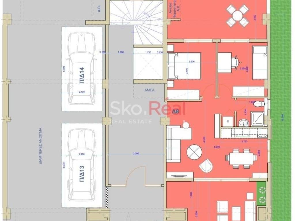 Το διαμέρισμα αποτελείται από ενιαίο χώρο σαλοκουζίνας, δύο άνετα υπνοδωμάτια μπάνιο και ιδιωτικό κήπο 47τ.μ..