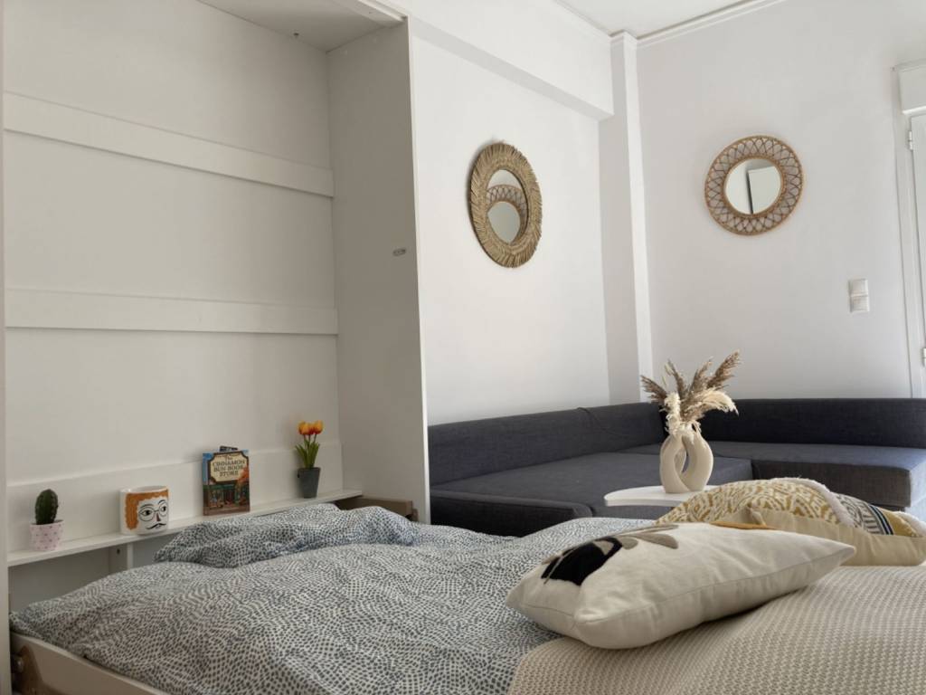 Studio Διαμέρισμα προς Ενοικίαση στο Λουτράκι – Ήσυχη Περιοχή, 1 Λεπτό από τη Θάλασσα Πλήρως επιπλωμένο studio διαμέρισμα προς ενοικίαση στο Λουτράκι, σε ήσυχη και ασφαλή γειτονιά, μόλις λιγότερο από 1 λεπτό με τα πόδια από την παραλία, τον σταθμό λεωφορείων και τον κεντρικό εμπορικό δρόμο της πόλης. Ιδανική επιλογή για άνετη και ήρεμη διαμονή δίπλα στη θάλασσα. Το διαμέρισμα διαθέτει ξεχωριστή κουζίνα (όχι ενιαία), καθιστικό που μετατρέπεται σε υπνοδωμάτιο με πτυσσόμενο κρεβάτι (Murphy bed) και καναπέ-κρεβάτι, καθώς και ιδιωτικό μπάνιο. Κατάλληλο για ένα ή δύο άτομα. Χαρακτηριστικά & παροχές: ✔ Πλήρως επιπλωμένο ✔ Ξεχωριστή, πλήρως εξοπλισμένη κουζίνα ✔ Τηλεόραση ✔ Φούρνος & εστίες ✔ Ψυγείο ✔ Πλυντήριο ρούχων ✔ Air fryer ✔ Δυνατότητα παροχής Wi-Fi κατόπιν συνεννόησης Παρότι βρίσκεται σε κεντρικό σημείο, το διαμέρισμα είναι σε ήσυχη κατοικημένη περιοχή, προσφέροντας ηρεμία και ιδιωτικότητα, με καταστήματα, καφέ, σούπερ μάρκετ και συγκοινωνία σε απόσταση αναπνοής. Ιδανικό για βραχυχρόνια ή μακροχρόνια μίσθωση στο Λουτράκι, για εργαζόμενους εξ αποστάσεως, ζευγάρια ή μεμονωμένα άτομα που αναζητούν studio κοντά στη θάλασσα. Για πληροφορίες και κρατήσεις, παρακαλούμε επικοινωνήστε με την Εύα και τη Μαρία Δεδακάκη στο τηλέφωνο: +30 694 243 5903 +30 694 693 9381