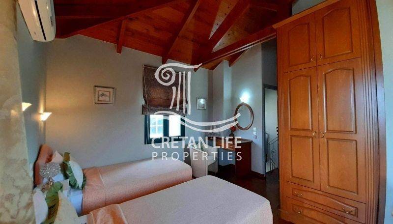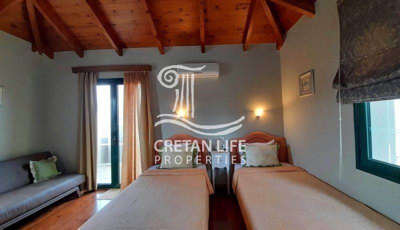 Το ακίνητο είναι χτισμένο στην κορυφή λόφου, στο πιο φημισμένο θέρετρο της Δυτικής Κρήτης, προσφέροντας πανοραμική θέα στο καταπράσινο τοπίο και τη θάλασσα, ενώ σε απόσταση μικρότερη των 500 μέτρων βρίσκονται εμπορικά καταστήματα, σούπερ μάρκετ, φαρμακεία, τράπεζες, καφέ, σχολεία, εστιατόρια, ξενοδοχεία και πλήθος παροχών που καλύπτουν τις ανάγκες ακόμη και του πιο απαιτητικού ενοίκου. Σε απόσταση μόλις 90 μέτρων, η πλατεία του οικισμού εξυπηρετεί τη στάθμευση των οχημάτων των κατοίκων, ενώ η αμμώδης παραλία, η οποία συγκαταλέγεται στις καλύτερες της Ελλάδας, απέχει μόλις 650 μέτρα.