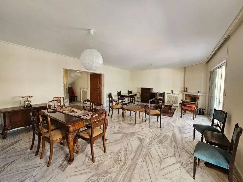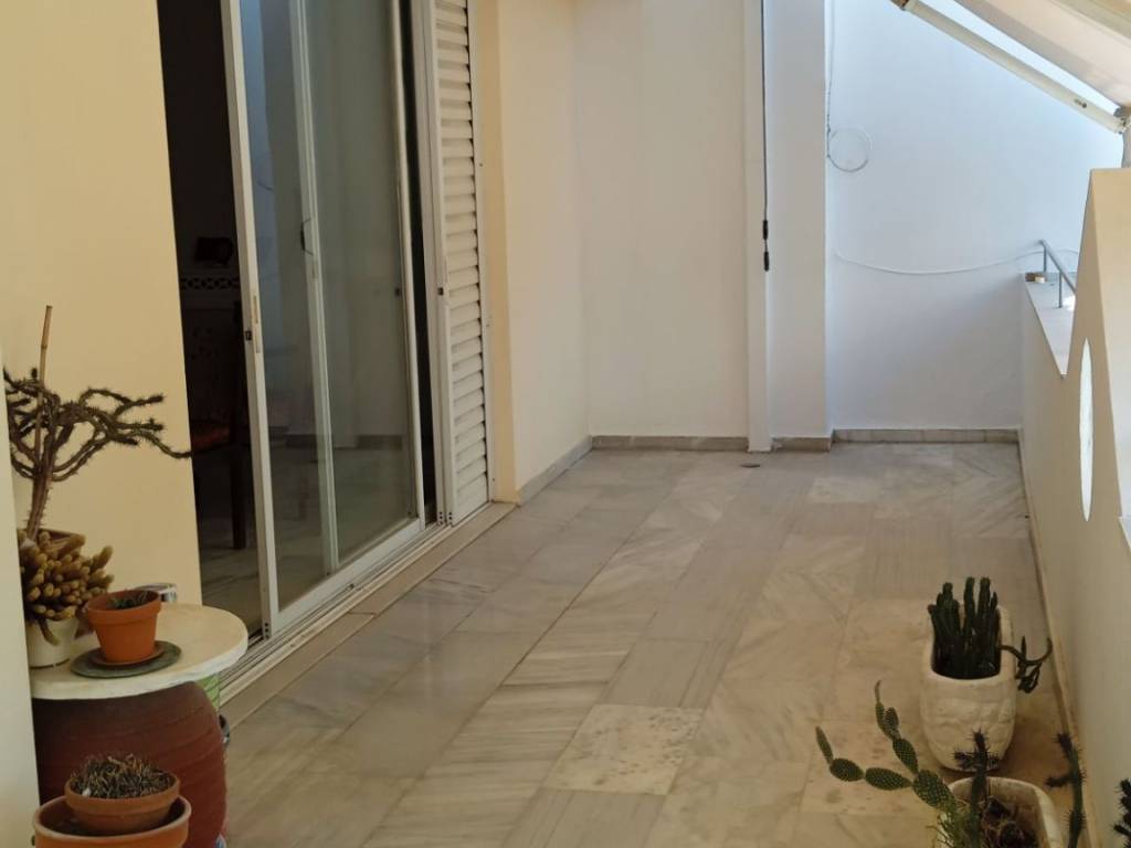 Νέα Σμύρνη κέντρο, σε ήσυχο σημείο, μόλις 3 λεπτά από την πλατεία Νέας Σμύρνης, πωλείται μεζονέτα 160 τ. μ. 4 ου- 5 ου ορόφου ρετιρέ, προσόψεως, διαμπερής, πολύ φωτεινή, με εξαιρετική διαρρύθμιση, κατασκευής του 1988. Το επίπεδο του 4 ου αποτελείται από χωλ, μεγάλο σαλόνι - τραπεζαρία με τζάκι , βεράντα περίπου 20 τ. μ. , κλειστή κουζίνα με χώρο για τραπέζι ή καθιστικό, 1 υ/δ με μπαλκόνι, laundry, μπάνιο με παράθυρο και σκάλα μαρμάρινη που ανεβαίνει στον επάνω όροφο. Το επίπεδο του 5 ου αποτελείται από 2 υ/δ και μπάνιο με παράθυρο. Τα υ/δ του 5 ου βγαίνουν σε ταράτσα 50 τμ, η οποία είναι αποκλειστικής χρήσης της μεζονέτας. Υπάρχει δυνατότητα δημιουργίας και 4 ου υ/δ στον 4 ο όροφο. Το ακίνητο διαθέτει θέση στάθμευσης στην πυλωτή και αποθήκη στο υπόγειο, αυτόνομη θέρμανση πετρελαίου, πόρτα ασφαλείας, καινούριες τέντες , μαρμάρινα πατώματα στους χώρους υποδοχής και παρκέ στα υ/δ, κουφώματα αλουμινίου και εύκολη πρόσβαση για ΑμεΑ. Βρίσκεται πολύ κοντά σε στάση τραμ, supermarket, σχολεία, κεντρική αγορά και την πλατεία Νέας Σμύρνης. Είναι ελεύθερο βαρών και άμεσα διαθέσιμο.