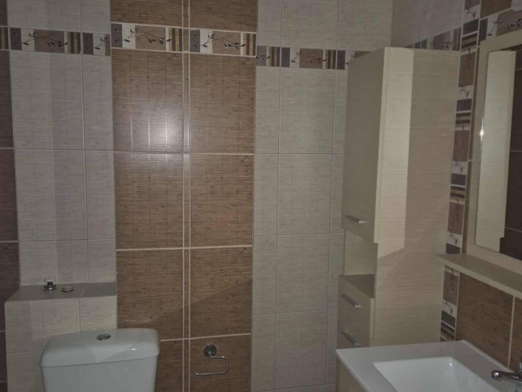 Διαμπερές οροφοδιαμέρισμα 1ου ορόφου, επιφανείας 130 τ.μ., το οποίο περιλαμβάνει 3 μεγάλα Υ/Δ, καινούργια κουζίνα, ενιαίο χώρο σαλονιού/τραπεζαρίας, 1 μπάνιο και 1 WC (και τα 2 με ντους) και ευρύχωρα μπαλκόνια. Και τα 3 Υ/Δ έχουν ξύλινο πάτωμα και μεγάλες ντουλάπες, ενώ το υπόλοιπο σπίτι διαθέτει μαρμάρινες επιφάνειες. Όλο το σπίτι φέρει αλουμινένια κουφώματα με διπλά τζάμια, και πόρτα ασφαλείας. Η κουζίνα είναι κατασκευής του 2025, με χώρους για εντοιχιζόμενες συσκευές. Το διαμέρισμα διαθέτει θέση στάθμευσης στην πυλωτή της πολυκατοικίας, ενώ έχει και ανεξάρτητη αποθήκη εμβαδού 12 τ.μ. στο υπόγειο. Το διαμέρισμα διαθέτει αυτόνομη θέρμανση (πετρέλαιο). Η ολοκλήρωση της κατασκευής πραγματοποιήθηκε το 2025.