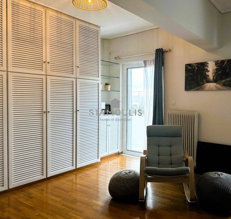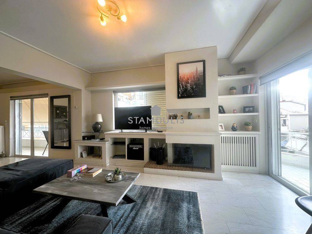 Γωνιακό οροφοδιαμέρισμα 126 τμ, 4ου ορόφου, κατασκευής 1995, με άνετη βεράντα και θέα Αθήνα – Λυκαβηττό. Αποτελείται από 2 Υ/Δ, μπάνιο, wc, χώρο υποδοχής με τζάκι και open plan εξοπλισμένη κουζίνα, πόρτα ασφαλείας, κουφώματα αλουμινίου με διπλά τζάμια και αυτονομία θέρμανσης με φ/α. Διαθέσιμο από 01/03/2026