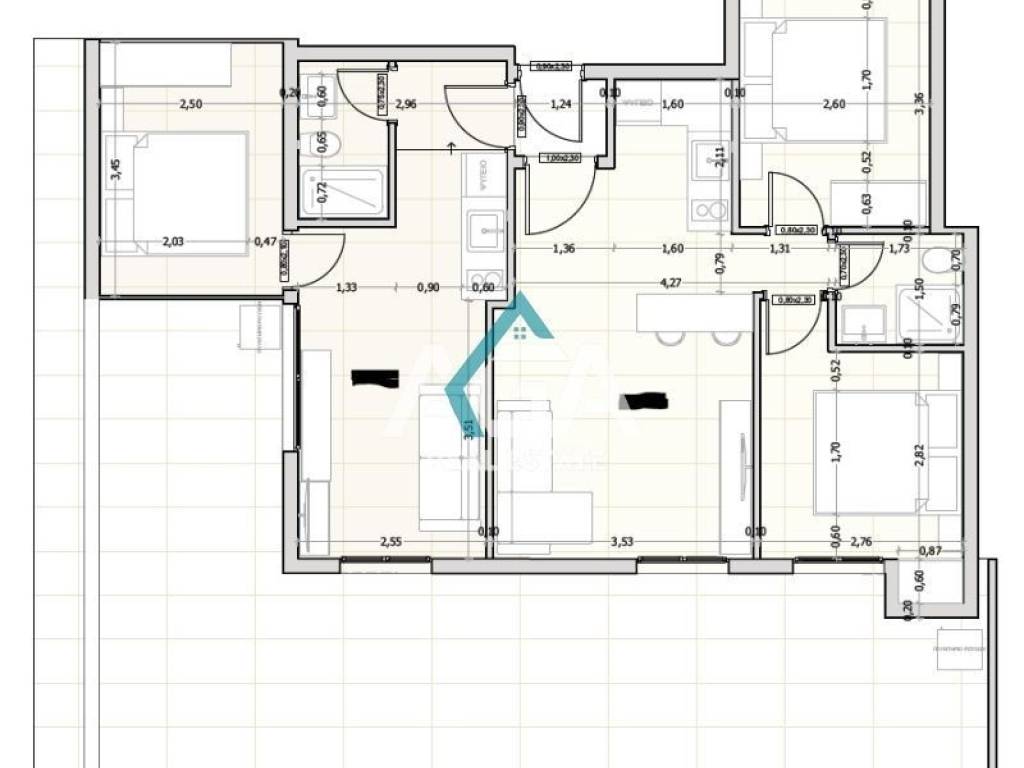 Το ακίνητο βρίσκεται στην αριστερή πλευρά της κάτοψης και διαθέτει τεράστιο μπαλκόνι με ειδική κατασκευή που το καλύπτει από πάνω, εξασφαλίζοντας προστασία και άνεση καθ’ όλη τη διάρκεια του χρόνου. Από τον εξωτερικό χώρο απολαμβάνει κανείς πανοραμική θέα στην πόλη, ενώ υπάρχει και χτιστό μπάρμπεκιου, ιδανικό για στιγμές χαλάρωσης και φιλοξενίας.