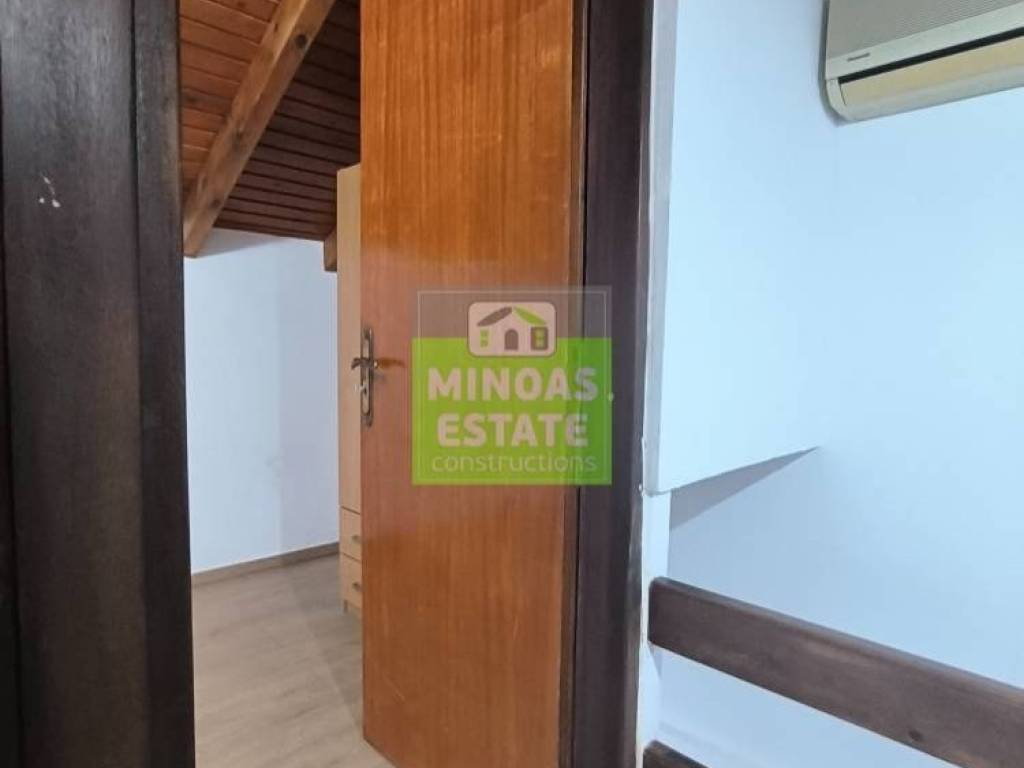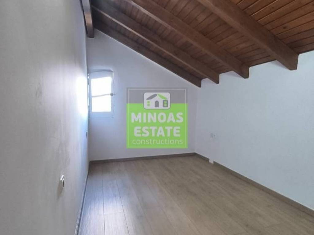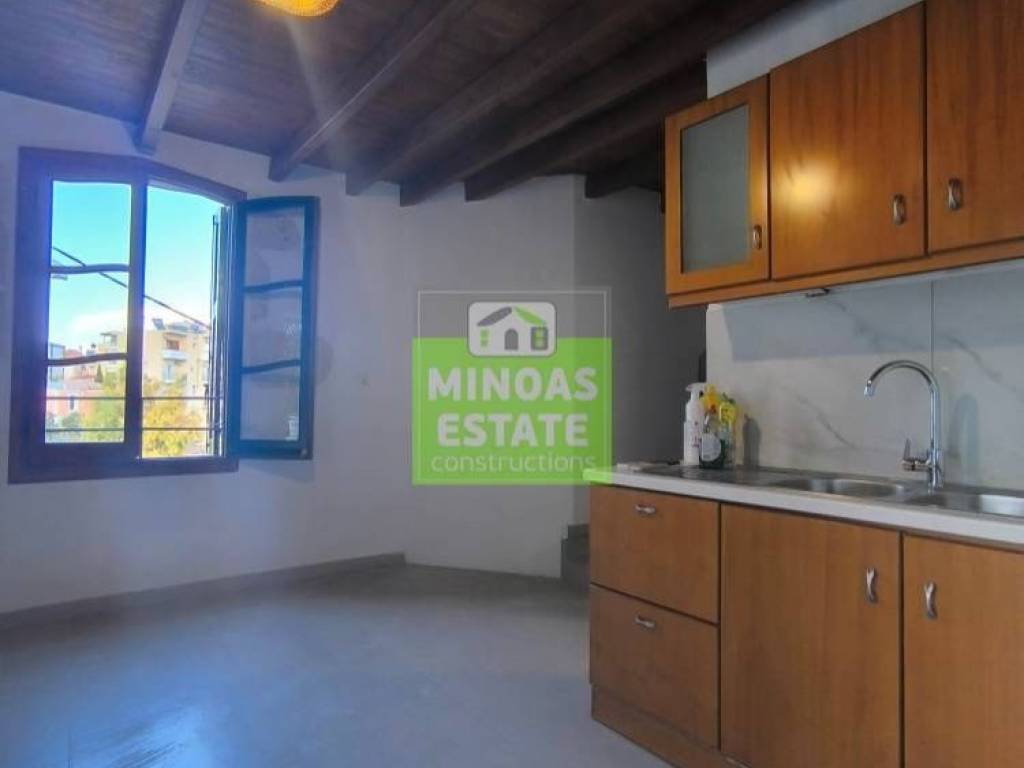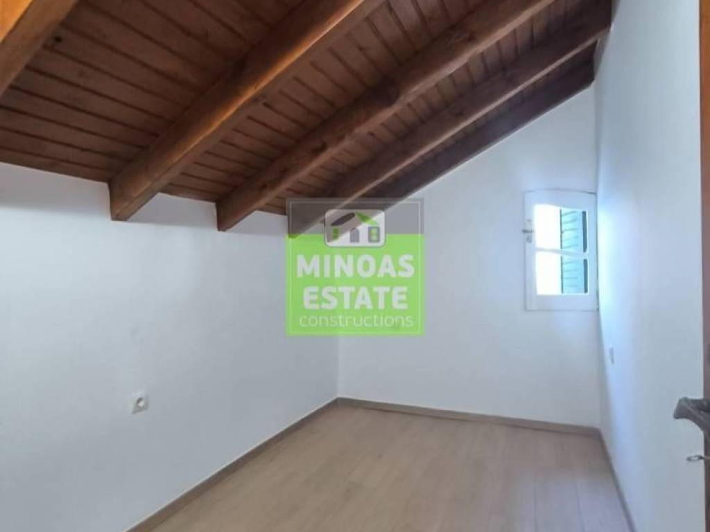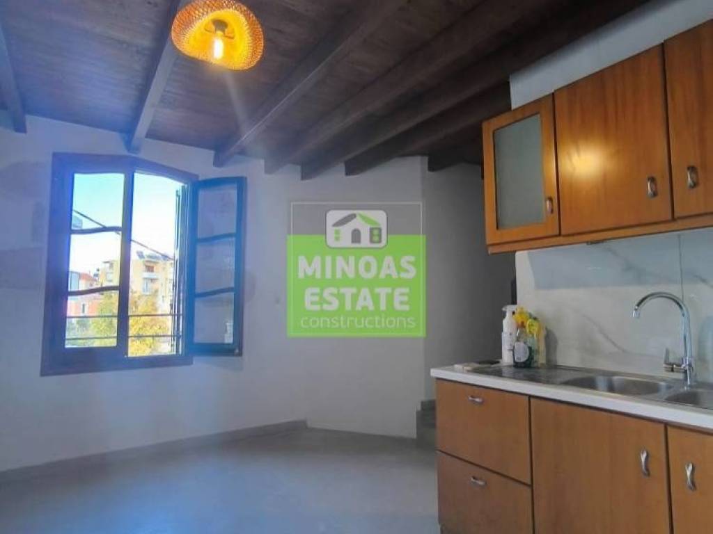 Chania, Amperia: Renovated stone-built Maisonette 50 sq.m. for rent. on the 1st floor of 2 levels with individual heating (2 large air conditioners). It consists of 2 bedrooms, 1 kitchen-living room, and a bathroom. It is painted, close to SCHOOLS-PHARMACY-SUPERMARKET and has a view of the city, tile & wood floors, awnings, solar water heater. It is located in an ideal part of the area, 5 minutes walk from Courts Square. It is ideal for students or workers. Price €550 (negotiable, long-term rental) | Property Code: #E-20100