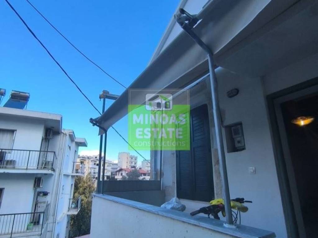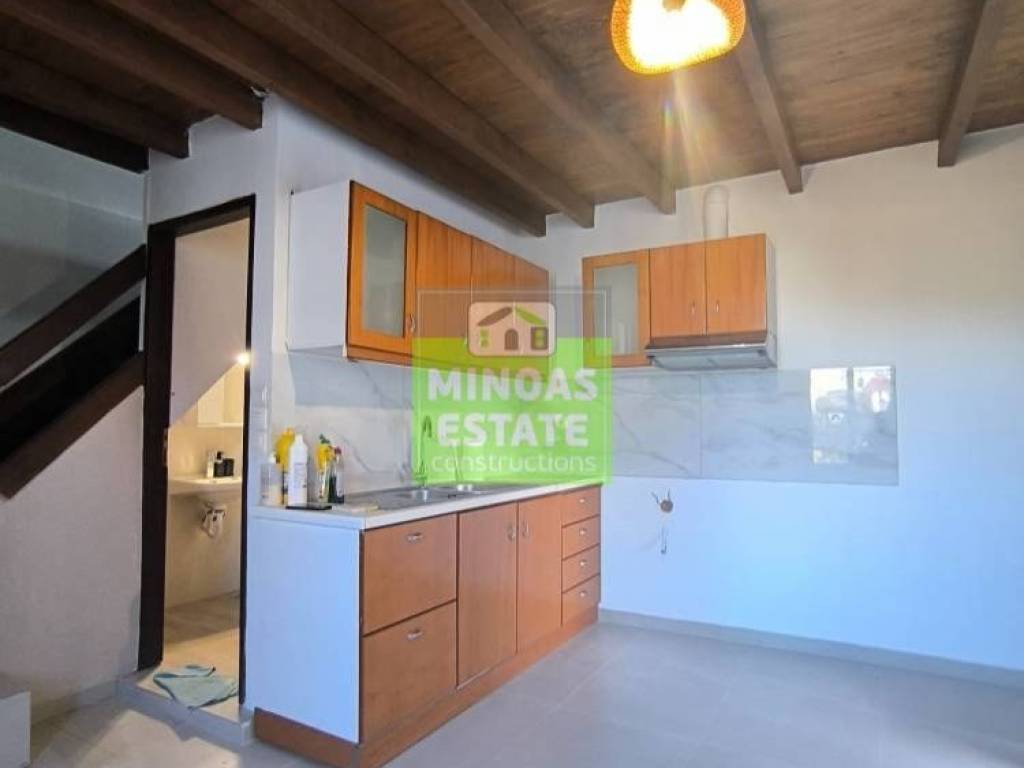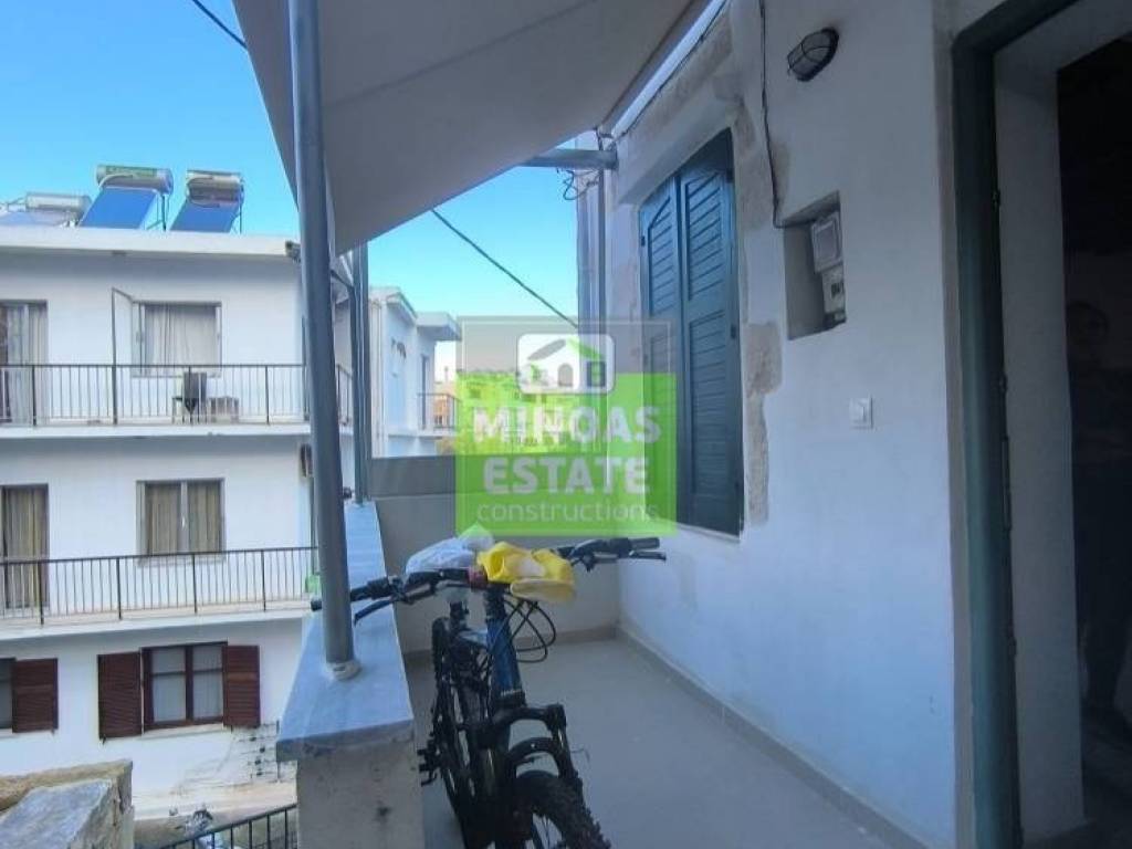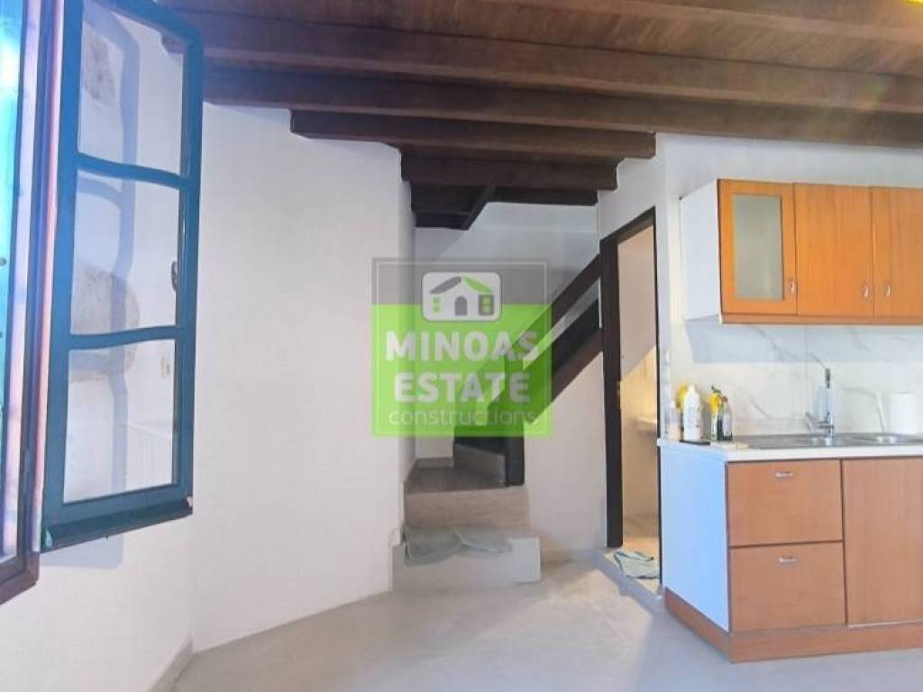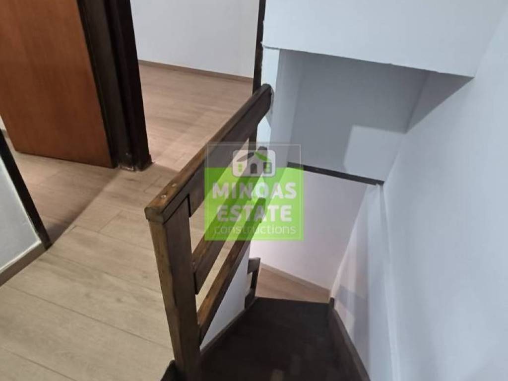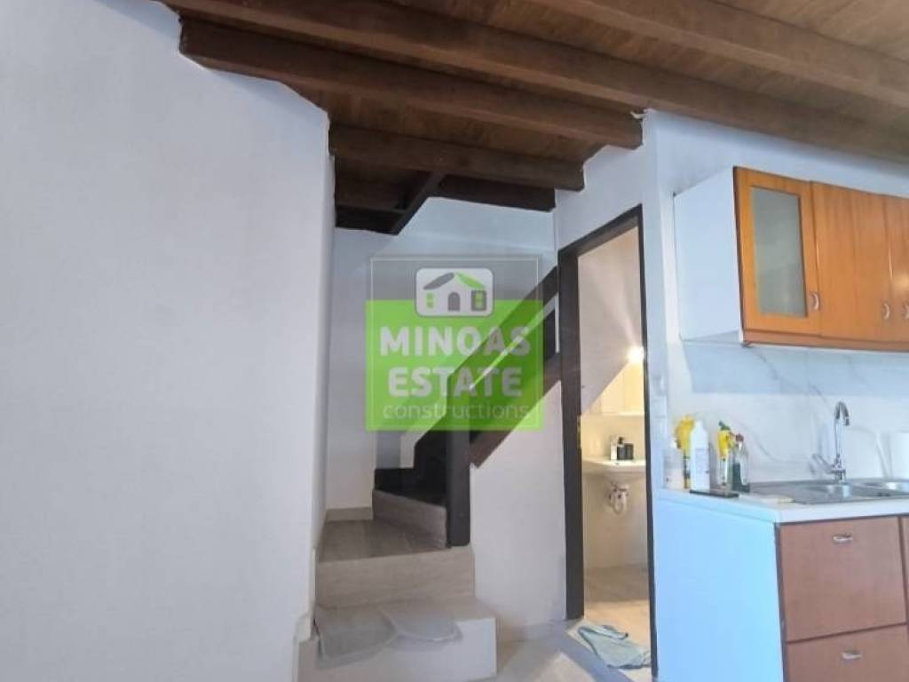 Chania, Amperia: Renovated stone-built Maisonette 50 sq.m. for rent. on the 1st floor of 2 levels with individual heating (2 large air conditioners). It consists of 2 bedrooms, 1 kitchen-living room, and a bathroom. It is painted, close to SCHOOLS-PHARMACY-SUPERMARKET and has a view of the city, tile & wood floors, awnings, solar water heater. It is located in an ideal part of the area, 5 minutes walk from Courts Square. It is ideal for students or workers. Price €550 (negotiable, long-term rental) | Property Code: #E-20100