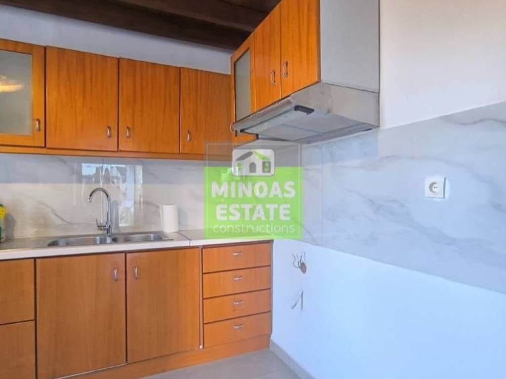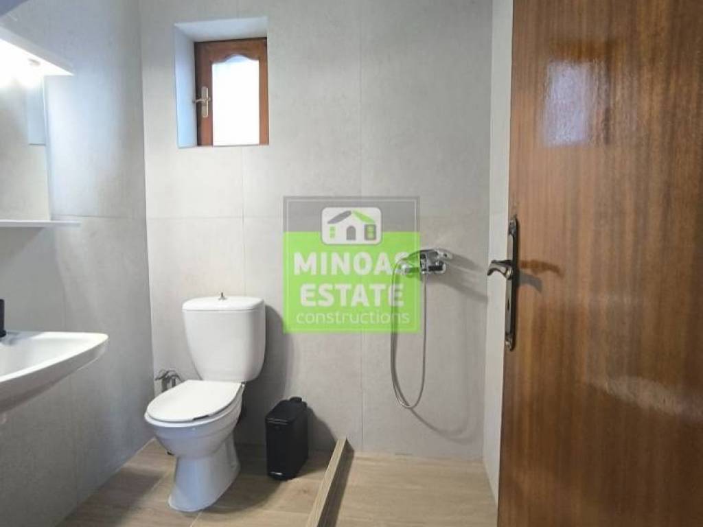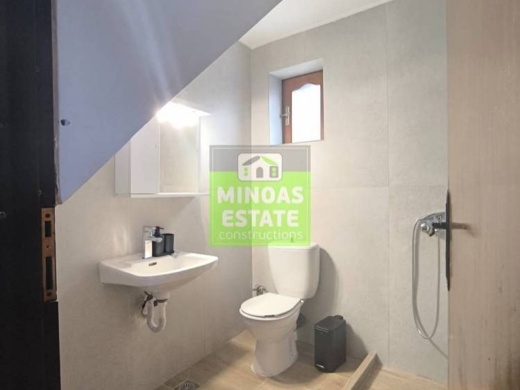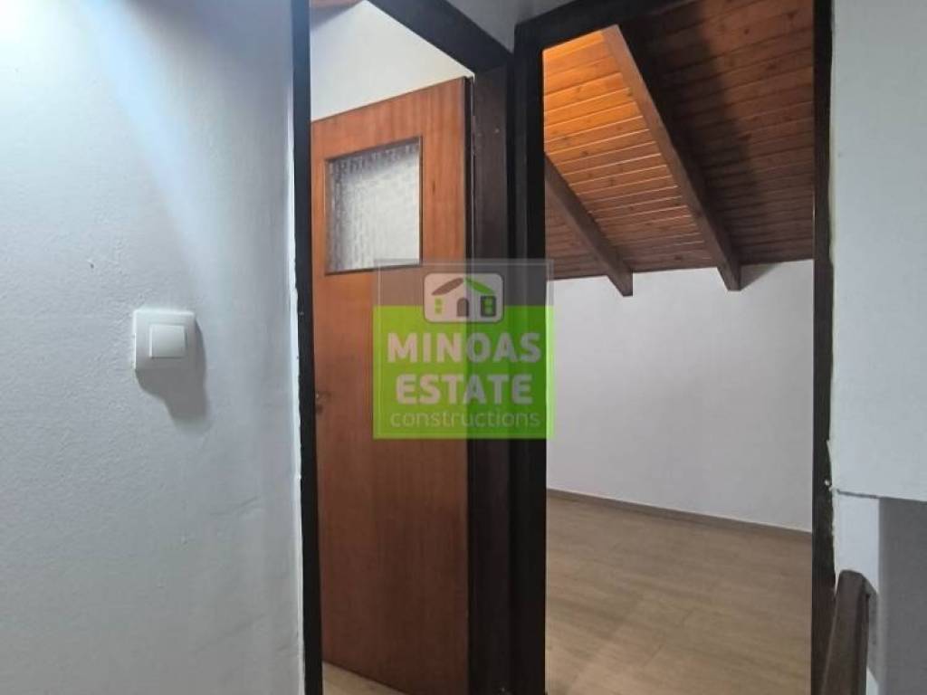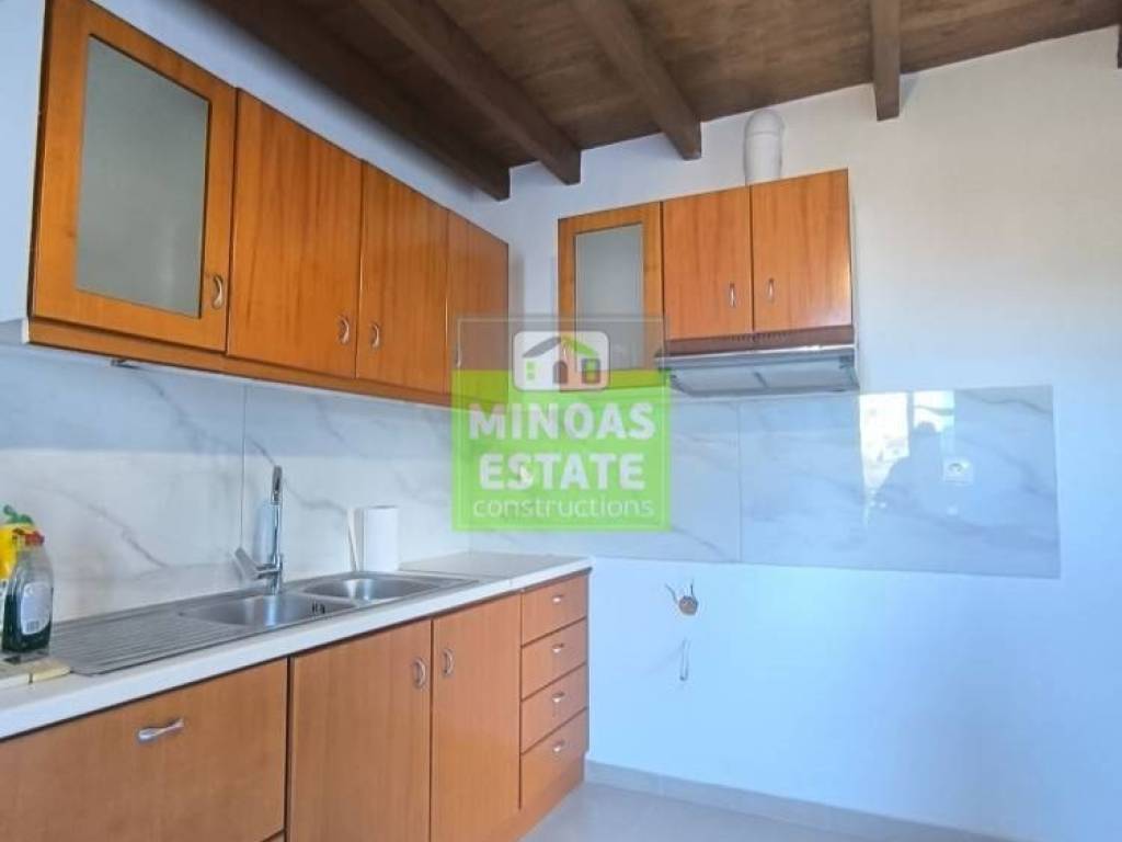 Chania, Amperia: Renovated stone-built Maisonette 50 sq.m. for rent. on the 1st floor of 2 levels with individual heating (2 large air conditioners). It consists of 2 bedrooms, 1 kitchen-living room, and a bathroom. It is painted, close to SCHOOLS-PHARMACY-SUPERMARKET and has a view of the city, tile & wood floors, awnings, solar water heater. It is located in an ideal part of the area, 5 minutes walk from Courts Square. It is ideal for students or workers. Price €550 (negotiable, long-term rental) | Property Code: #E-20100