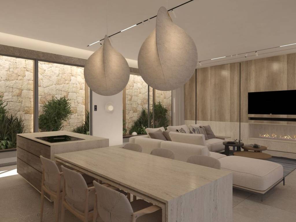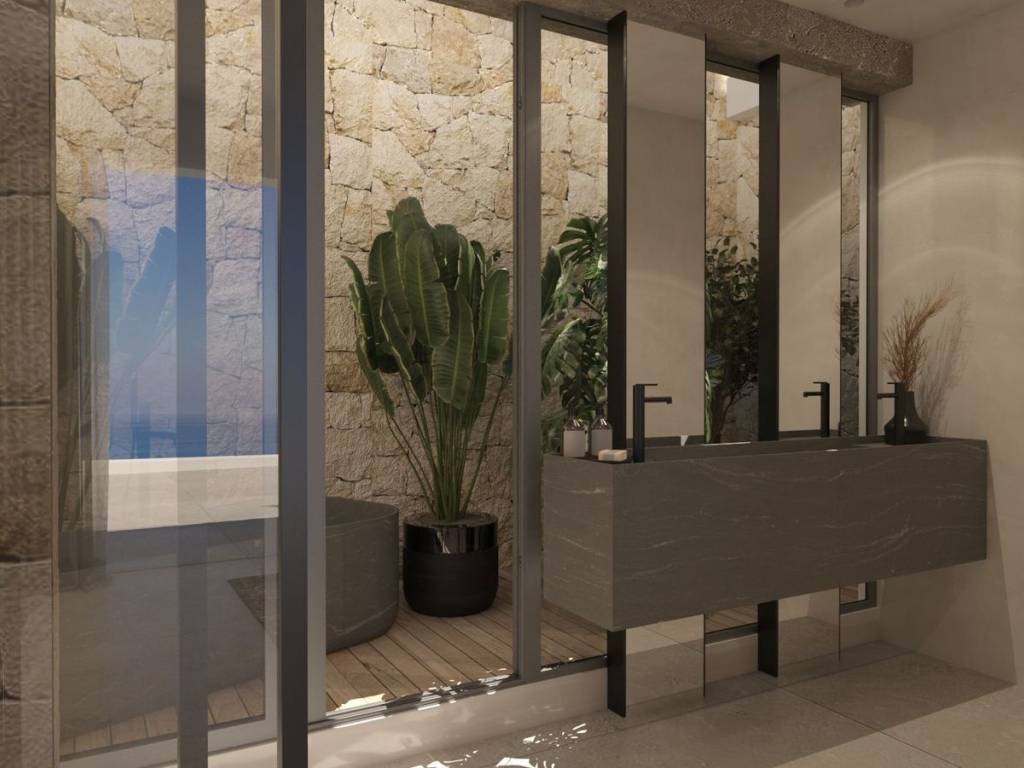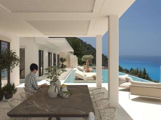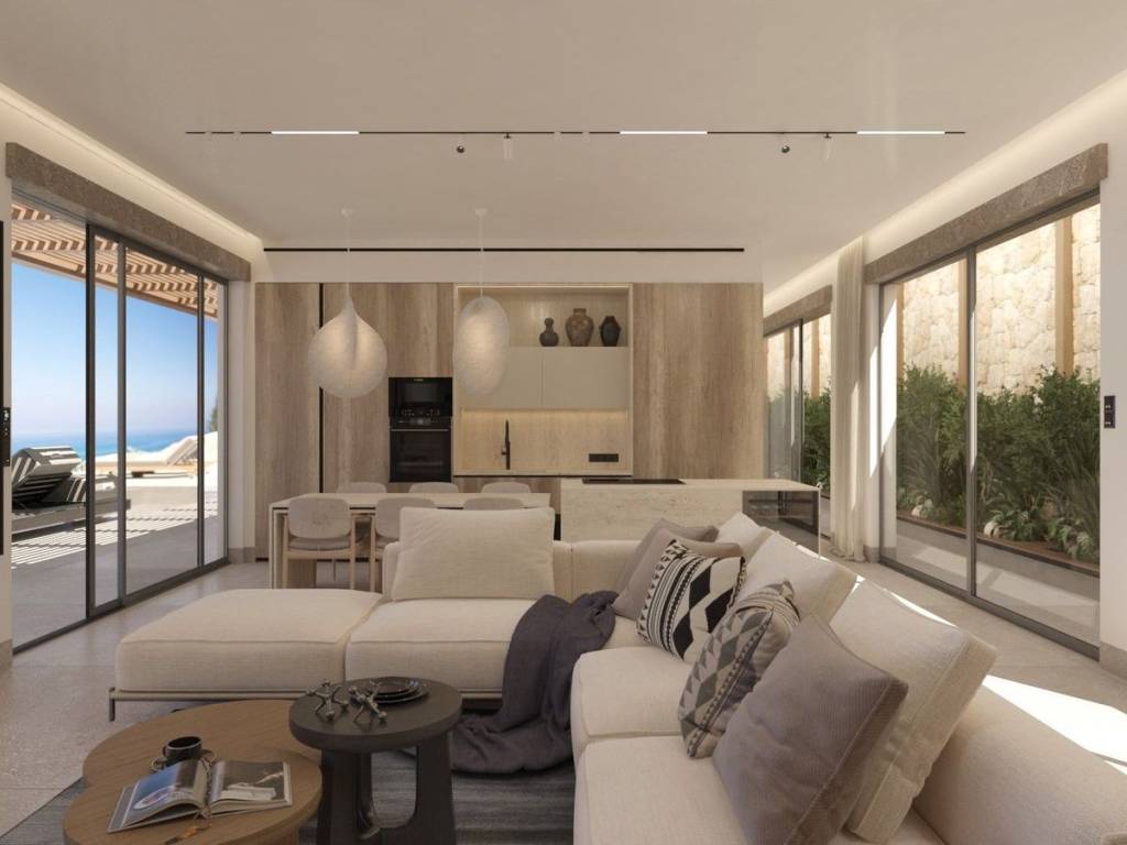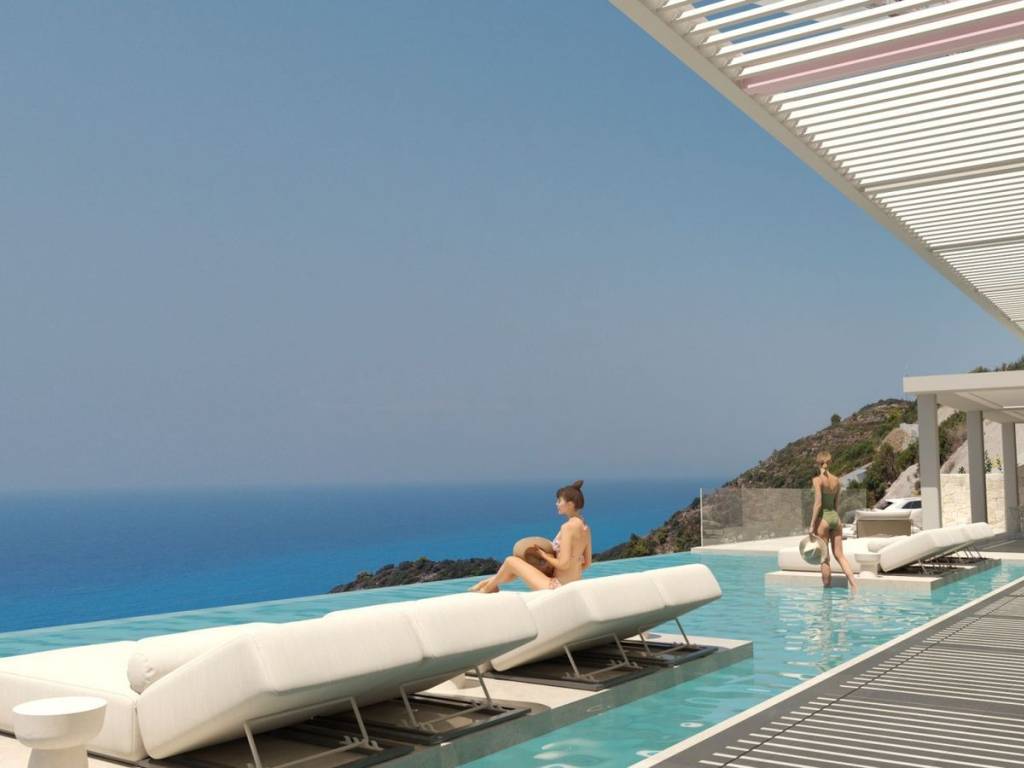 Μόλις 300 μέτρα από τα φωτεινά νερά της παραλίας Κάθισμα και μόλις δέκα λεπτά από την πόλη της Λευκάδας, αυτή η εξαιρετική Off-Plan υπόσκαφη βίλα είναι σμιλεμένη απευθείας στην φυσική κλίση του λόφου, επιτρέποντας σε κάθε χώρο να ανοίγει πλήρως προς τον απέραντο ορίζοντα του Ιονίου. Κατασκευασμένη από κορυφαίας ποιότητας φυσική πέτρα, υψηλής αντοχής οπλισμένο σκυρόδεμα και εκτεταμένες γυάλινες επιφάνειες που εξαφανίζουν τα όρια ανάμεσα στο εσωτερικό και το τοπίο, η αρχιτεκτονική ακολουθεί τις καθαρές αρχές της υπόγειας πολυτελούς δόμησης—ήσυχη, γλυπτική, απόλυτα διαμορφωμένη από την ακτογραμμή και το ηλιοβασίλεμα. Εδώ, εκεί όπου η θάλασσα συναντά τον ουρανό και η ζωή γίνεται φως, κάθε απόγευμα εξελίσσεται σε ένα καθηλωτικό τελετουργικό, καθώς ο ήλιος χάνεται στο ανοιχτό Ιόνιο, βάφοντας τον ορίζοντα με χρυσές και ροζ αποχρώσεις. Είναι ένα μέρος όπου η ατμόσφαιρα γίνεται μέρος της αρχιτεκτονικής, όπου η ζωή στο Ιόνιο αποκτά νέο νόημα. Η κατοικία των 240 τ.μ., η οποία βρίσκεται σε διαφορετικό επίπεδο του φυσικά επικλινούς οικοπέδου, παραδίδεται πλήρως επιπλωμένη με πολυτελή, ειδικά σχεδιασμένα κομμάτια που αναδεικνύουν την μινιμαλιστική παλέτα της πέτρας και τη φωτεινή αίσθηση του εσωτερικού. Στο εσωτερικό, οι χώροι κατοικίας ξεδιπλώνονται με μελετημένη κομψότητα. Ένα ευρύχωρο ανοιχτό καθιστικό αποτελεί τον κεντρικό πυρήνα, με ένα εκλεπτυσμένο τζάκι που γίνεται σημείο αναφοράς τις πιο δροσερές νύχτες. Οι υαλοστάσιοι από το δάπεδο έως την οροφή φέρνουν ολόκληρο το Ιόνιο μέσα στο δωμάτιο, αφήνοντας το φυσικό φως και τα χρώματα του ηλιοβασιλέματος να ζωντανεύουν κάθε επιφάνεια. Δίπλα, μια υπερσύγχρονη κουζίνα με εντοιχισμένες hi-tech ηλεκτρικές συσκευές, λιτή σύγχρονη αισθητική και άψογη λειτουργική οργάνωση, υποστηρίζει τόσο την καθημερινότητα όσο και την υψηλής ποιότητας φιλοξενία. Η τραπεζαρία, στραμμένη προς τη δύση, εξασφαλίζει ότι κάθε γεύμα λούζεται από το φως του ανοιχτού θαλάσσιου ηλιοβασιλέματος—μια μορφή «αρχιτεκτονικής του ηλιοβασιλέματος» που μεταμορφώνει τον χρόνο σε ζωντανό έργο τέχνης. Τέσσερις σουίτες-master ολοκληρώνουν την ιδιωτική πτέρυγα της βίλας, η καθεμία σχεδιασμένη ως απόλυτο καταφύγιο ηρεμίας. Εκλεπτυσμένες ορυκτές υφές, σμιλεμένες λεπτομέρειες πέτρας και προσεκτικά μελετημένος φωτισμός δημιουργούν μια ατμόσφαιρα καθαρότητας και γαλήνης. Κάθε σουίτα διαθέτει δικό της μπάνιο και πανοραμικές γυάλινες επιφάνειες που αγκαλιάζουν τις συνεχώς μεταβαλλόμενες αποχρώσεις του Ιονίου. Στον εξωτερικό χώρο, η βίλα αναπτύσσεται σε μια σειρά από αναβαθμίδες λαξευμένες στη φυσική κλίση του εδάφους. Η infinity pool εκτείνεται προς τη θάλασσα, με το νερό της να ενώνεται οπτικά με τον ορίζοντα. Ένα υπαίθριο καθιστικό κάτω από ειδικά σχεδιασμένες σκιάσεις προσκαλεί σε ατελείωτες ώρες χαλάρωσης, ενώ η πλήρως εξοπλισμένη εξωτερική κουζίνα και το BBQ pavilion μετατρέπουν το περιβάλλον σε μια ολοκληρωμένη εμπειρία υπαίθριας ζωής και γαστρονομίας. Κάθε εξωτερική οπτική γραμμή έχει σχεδιαστεί για να πλαισιώνει το ανοιχτό Ιόνιο και το ανεμπόδιστο ηλιοβασίλεμα. Με μινιμαλιστική αρχιτεκτονική, εξαιρετικής ποιότητας υλικά, infinity pool, σουίτες στραμμένες προς τη δύση και μια τοποθεσία που κυριολεκτικά φέρνει το ανοιχτό Ιόνιο στα πόδια σας, αυτή η βίλα είναι εκεί όπου ο τρόπος ζωής συναντά την επένδυση. Ένα σμιλεμένο μεσογειακό καταφύγι