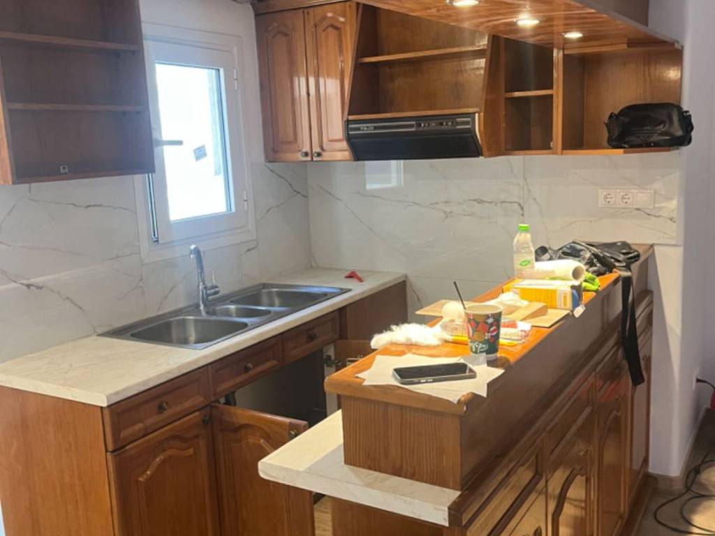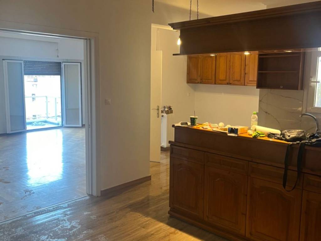 Μεγάλο hall με μεγάλη κουζίνα, ένα σαλόνι μεγάλο 2 υπνοδωμάτια 3 μπαλκόνια 2 WC.