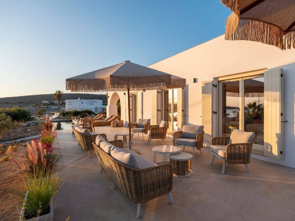 Μια όμορφη κατοικία σύγχρονης αισθητικής σε προνομιακό σημείο, μόλις λίγα βήματα από την καταπληκτική παραλία του Κριού, στην Πάρο. Αναπτύσσεται σε ένα επίπεδο 160τ.μ. και βρίσκεται σε οικόπεδο 730τ.μ., προσφέροντας άνεση και λειτουργικότητα σε έναν αρμονικά σχεδιασμένο χώρο. Αποτελείται από ένα σαλόνι, τραπεζαρία, open plan κουζίνα, 3 υπνοδωμάτια με en-suite μπάνια και 1 W.C. επισκεπτών. Το ακίνητο διαθέτει επίσης laundry και αποθήκη. Οι χώροι χαρακτηρίζονται από άνεση και υπέροχη θέα στη θάλασσα. Εξωτερικά, η κατοικία προσφέρει πισίνα, υπαίθρια καθιστικά/τραπεζαρία και BBQ όλα διαμορφωμένα έτσι ώστε να απολαμβάνει κανείς την αύρα της θάλασσας. Το roof terrace με πανοραμική θέα στο κυκλαδίτικο τοπίο ολοκληρώνει την εικόνα. Ένα όμορφο ακίνητο, δίπλα σε αμμώδη παραλία και σε κοντινή απόσταση από το κέντρο της Παροικιάς, στην Πάρο.