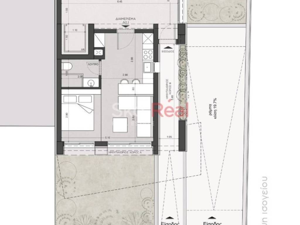 Διατίθεται προς πώληση 41τμ ισόγειο στούντιο (μονόχωρο, χωρίς δωμάτιο), σε υπό κατασκευή οικοδομή πολυτελείας, με ιδιωτική αυλή. Αποτελείται από έναν ενιαίο χώρο με κουζίνα και μπάνιο. Ιδιαίτερο πλεονέκτημα αποτελεί η ιδιωτική αυλή.