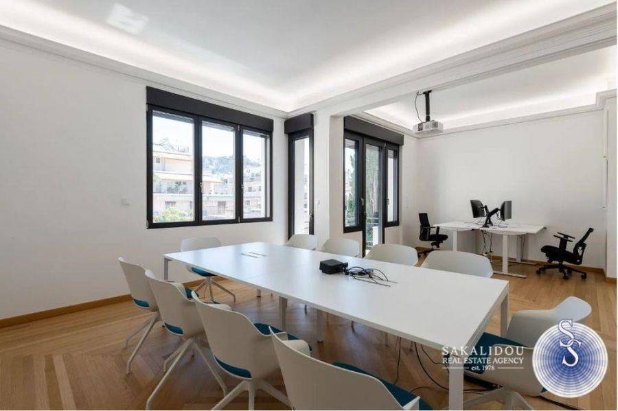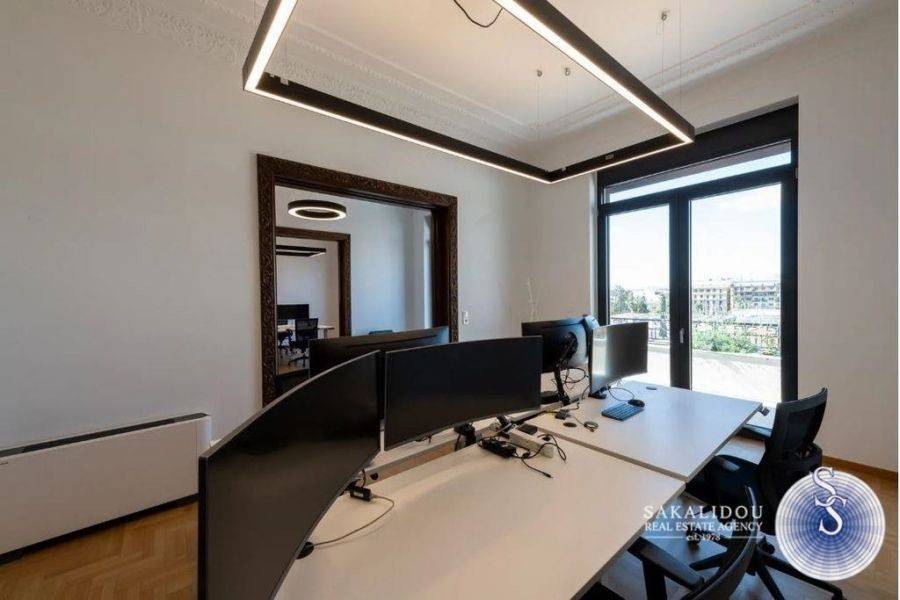 Διατίθεται κτίριο γραφείων επί της οδού Μπουμπουλίνας στα Εξάρχεια, στον Γ΄ όροφο, συνολικής επιφάνειας 220 τ.μ., με πρόσβαση από κλιμακοστάσιο και ανελκυστήρα. Στεγάζεται σε ιστορικό – εμβληματικό κτίριο Μεσοπολέμου, χαρακτηριστικό δείγμα κλασικής αθηναϊκής αρχιτεκτονικής. Ο χώρος διαθέτει απρόσκοπτη θέα προς το Εθνικό Αρχαιολογικό Μουσείο και το κέντρο της Αθήνας από την πλευρά της Μπουμπουλίνας, ενώ από την εσωτερική αυλή προσφέρει θέα προς τον Λυκαβηττό, λόγω γειτνίασης με χαμηλό διατηρητέο κτίσμα. Σε εξαιρετικά προνομιακή τοποθεσία, λίγα βήματα από τον πεζόδρομο της Στουρνάρη, μεταξύ ΕΜΠ και Αρχαιολογικού Μουσείου. Σύμφωνα με τον σχεδιασμό της ΑΤΤΙΚΟ ΜΕΤΡΟ Α.Ε., προβλέπεται κατασκευή εισόδου–εξόδου του μελλοντικού σταθμού Μετρό Εξαρχείων (Γραμμή 4) σε άμεση γειτνίαση. Η περιοχή εξυπηρετείται ήδη από όλα τα μέσα μεταφοράς και βρίσκεται κοντά στους σταθμούς Ομόνοια & Βικτώρια, καθώς και στους βασικούς οδικούς άξονες Λ. Αλεξάνδρας και Πατησίων.