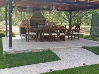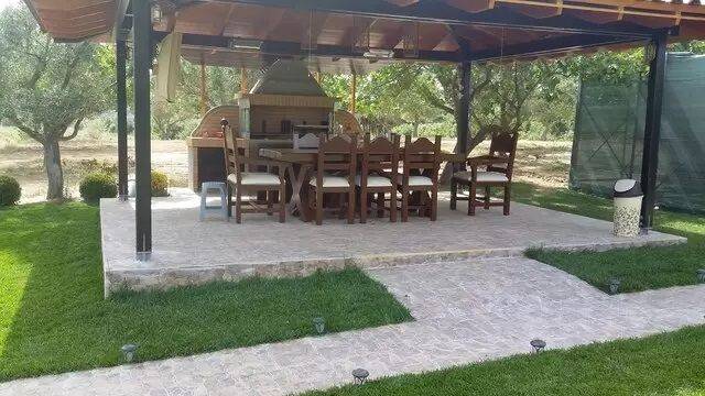περιφραγμένο περιμετρικά με σύρμα ύψους 2,5 μ. και λειλαντί, ο χώρος διαθέτει κολόνες φωτισμού ανά 15 μ. και κάμερες, επιπλέον έχει νερό, ρεύμα, τηλέφωνο και πηγάδι, το κτήμα έχει στο εσωτερικό του ένα παλιό κτίσμα 40 τ.μ., επίσης υπάρχουν στο εσωτερικό του 60 φιστικιές, 60 ελιές 50 ετών, διαθέτει λουξ πέργκολα 6,5 x 5 μ. με ψησταριά και φούρνο, θέρμανση, τηλεόραση και ηλεκτρικές τέντες, επίσης υπάρχει και ένα λουξ εξάγωνο περίπτερο σε 1.500 τ.μ. έκταση με γκαζόν, χρήση γης για οικία, θερμοκήπια, κτηνοτροφικές & σταυλικές εγκαταστάσεις, κατασκηνώσεις & camping, αγροτικές αποθήκες για πρωτογενή τομέα, κέντρα στήριξης ΑΜΕΑ, χρήση εκπαίδευσης με μέγιστη συνολική επιτρεπόμενη επιφάνεια 400 τ.μ.